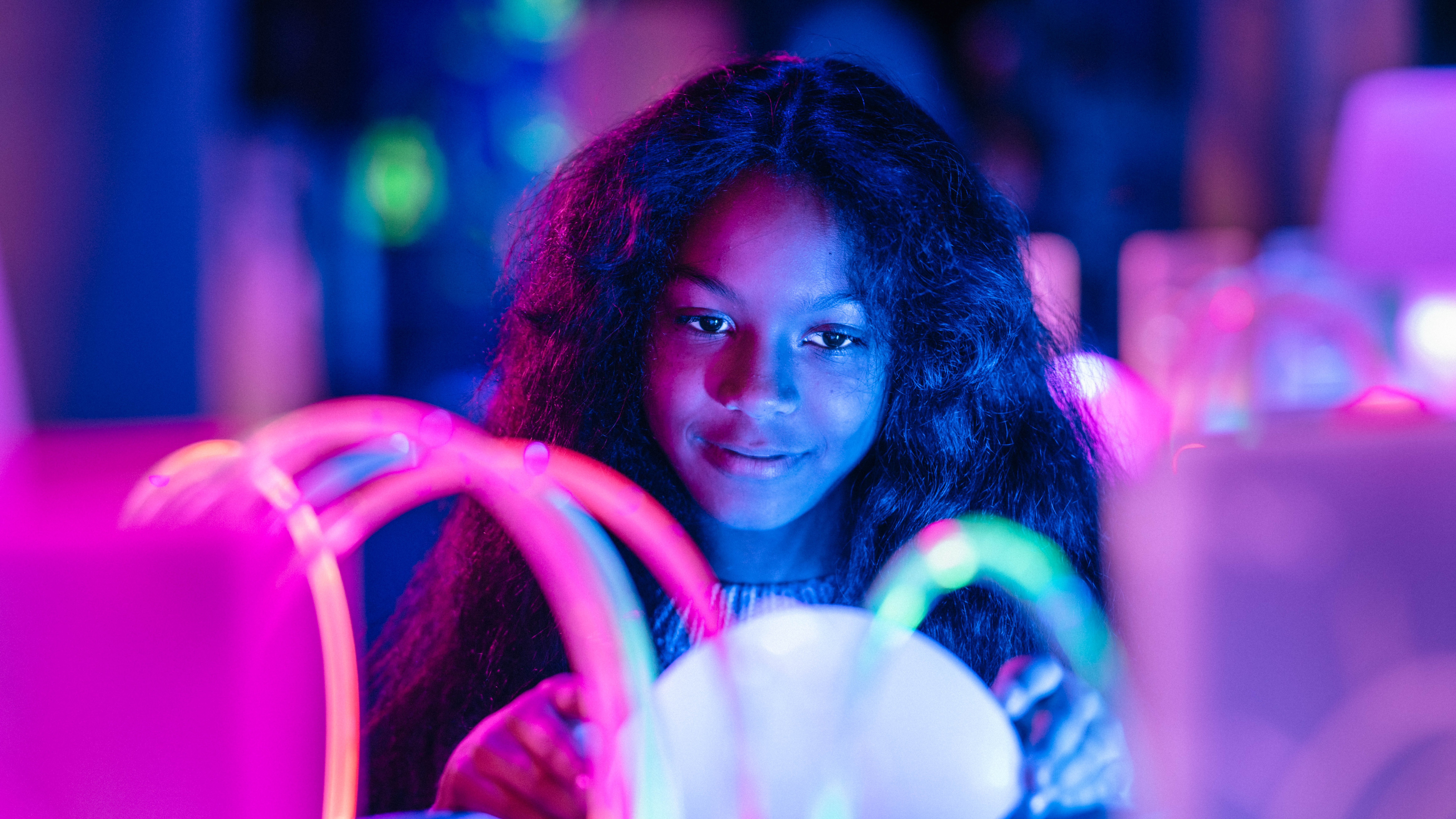 Sit under a calming canopy of lights in the centre of the exhibition where you can watch others play and recharge.