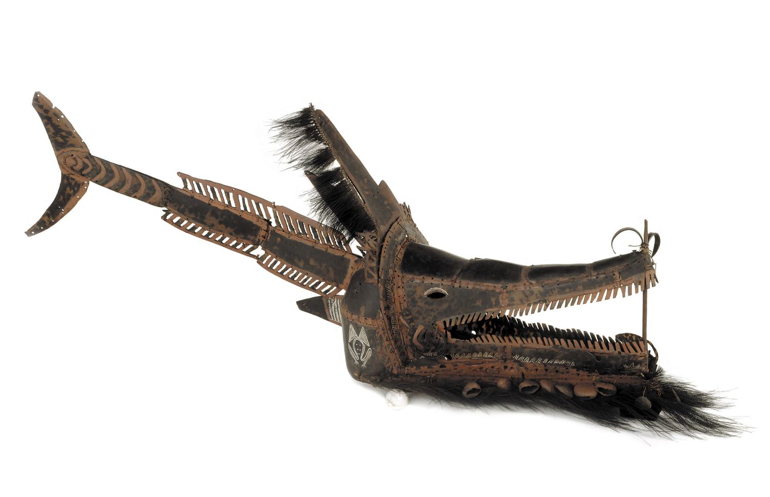 A headdress in the form of a crocodile with a fish tail.