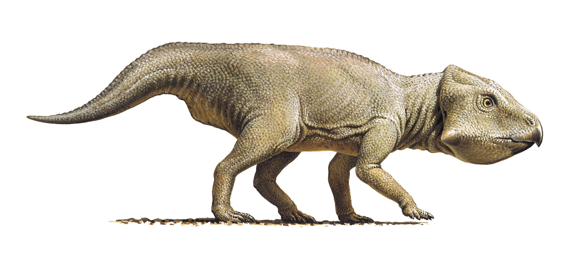 a illustration of a small, beaked dinosaur walking on four legs