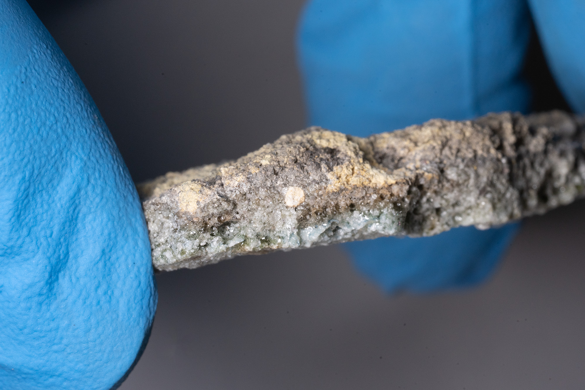 ‘On the bottom it’s got a sandy layer which will have been bits of sand in the area that have adhered to the bottom of this glass.’