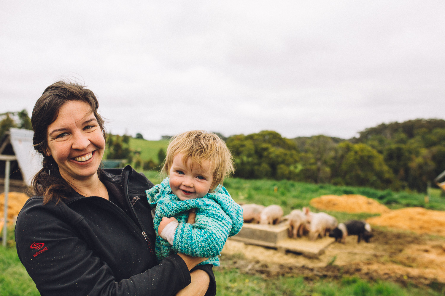 'Hazel was born at almost 43 weeks, so I was feeding pigs up until about 40 weeks with her, and from day dot… Hazel is part of our journey and part of caring for the land. She’s part of us, and she’s part of the farm.'