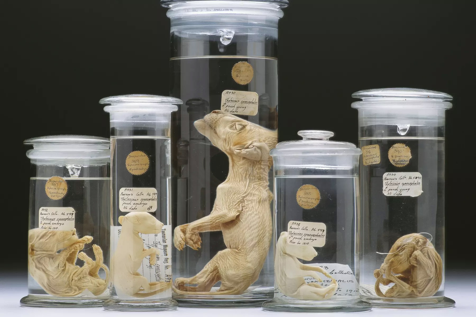 She says that a very limited number of pouch young specimens (joeys) were collected and preserved, and these now exist in various museum collections across the world from Tasmania to Prague.