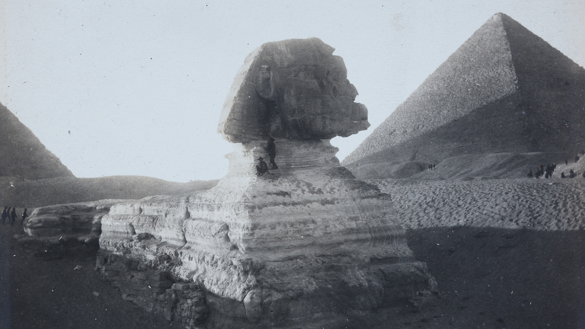 Ancient Egyptian structures, including the Sphinx and pyramids in Giza.