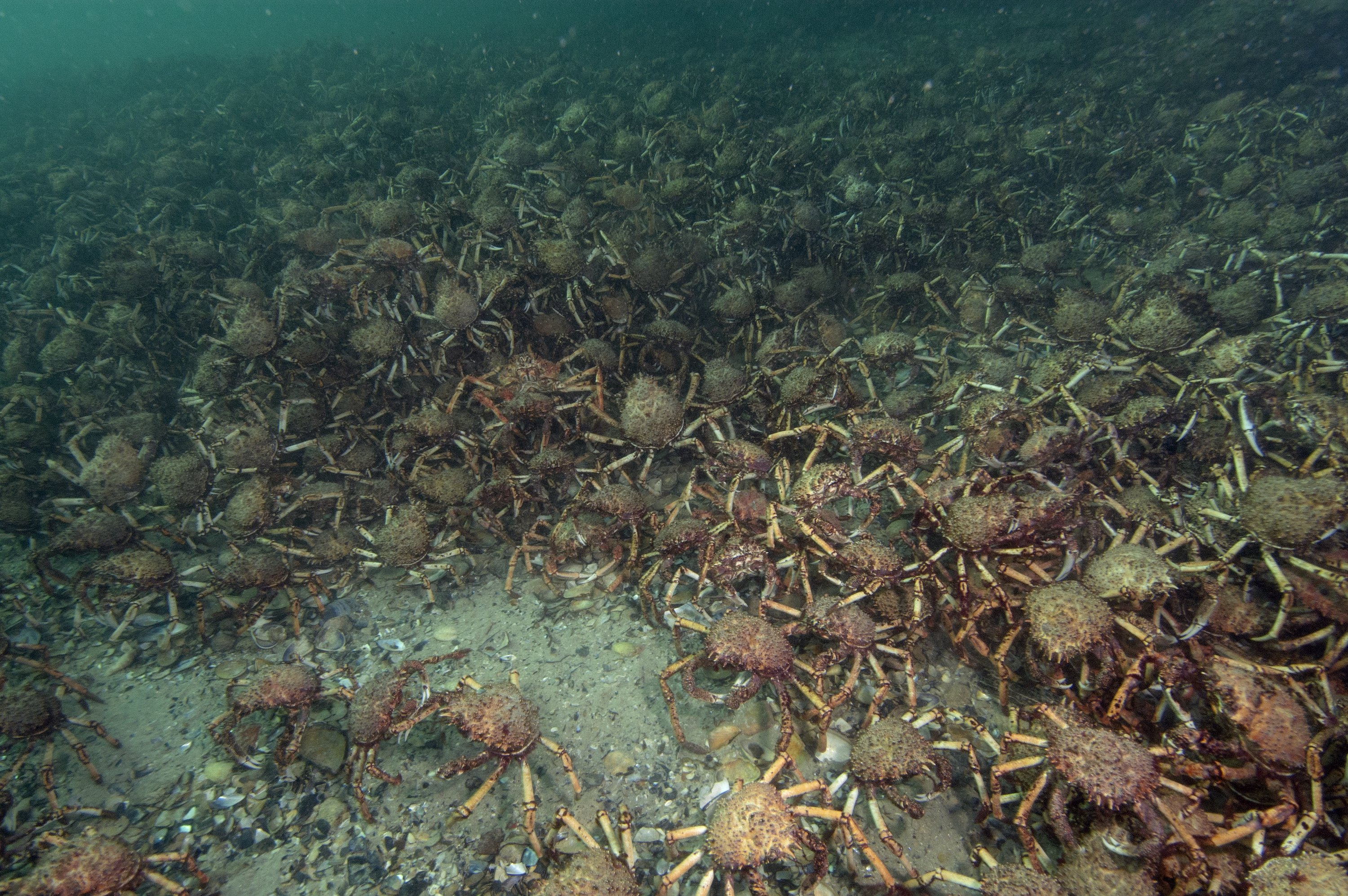 Every year, thousands of Giant Spider Crabs (Leptomithrax gaimardii) congregate in Port Phillip Bay ahead of their annual winter moult.
