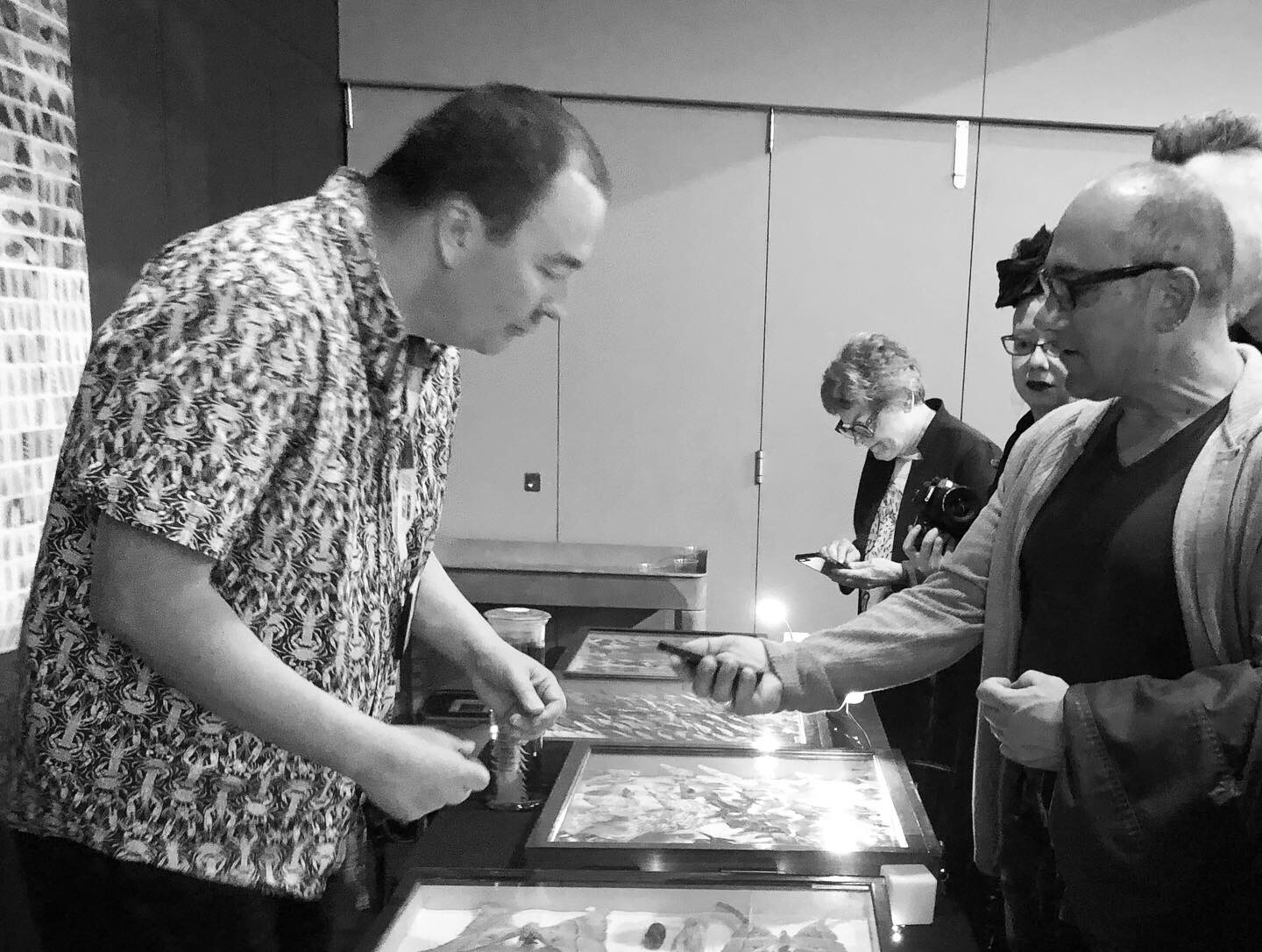 I managed to capture the above moment when my friend Richard Morden was showing Simon Hinkley an image on his phone of a spider with its guts hanging out, on the point of asking a question. I have a feeling Richard was asking Simon to ID the spider. After I captured this moment visitors arrived at my table so I went over to talk to them and missed the rest of this exchange. Nocturnal is not only about discussing what is on the table, but about other aspects of museum work, and what it’s like to work in a museum. I had some fascinating conversations with visitors about human remains in the collections. One visitor mentioned that they had seen human remains on display in a museum overseas and this kicked off a discussion around repatriation of human remains, and the important work current museum staff do in this area with Indigenous communities.