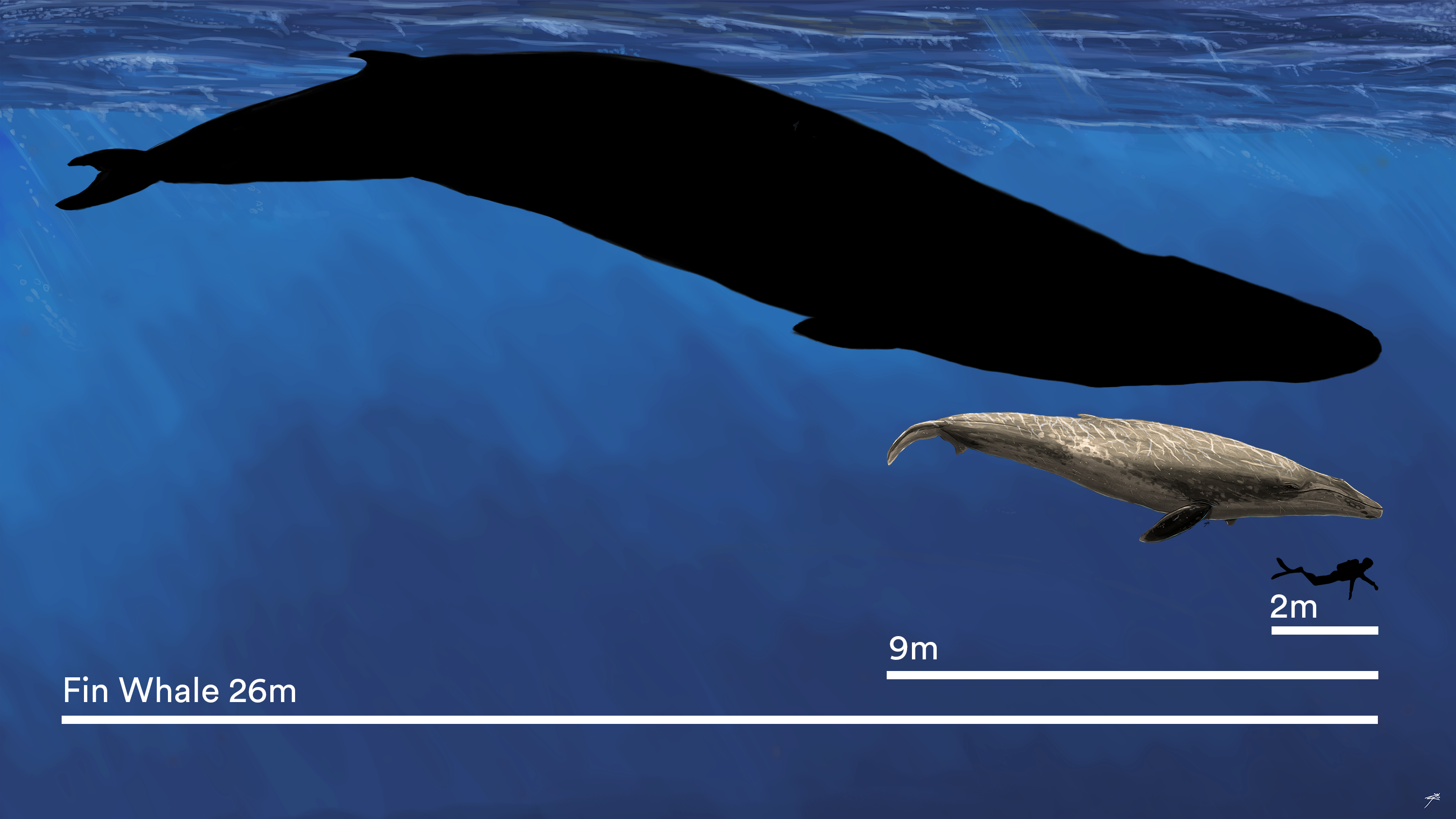 Baleen whales are the titans of the ocean, the largest animals to have ever lived. The record holder is the blue whale (Balaenoptera musculus), which can reach lengths of up to 30 metres. That’s longer than a basketball court.