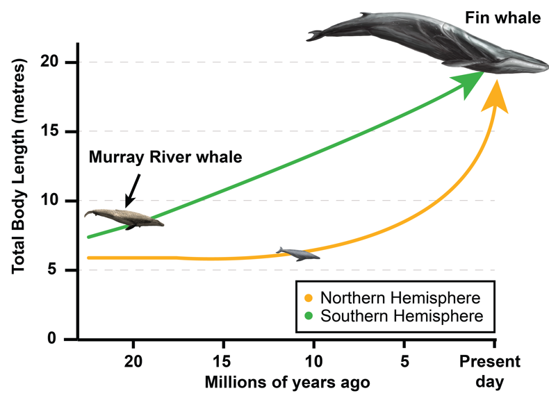Scientists previously thought baleen whales kept to relatively small proportions until the ice ages (which began from about 3–2.5 million years ago). But the majority of research on trends in the evolutionary history of whales is based on the reasonably well-explored fossil record from the Northern Hemisphere – a notable bias that likely shaped these theories.