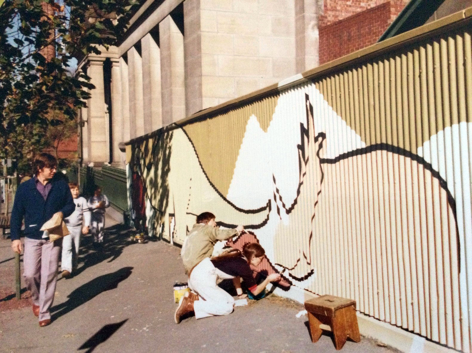 ‘I was dressed up as Phar Lap’s jockey for his excursion to Flemington, helped guide a model pteranodon down the side of the Russell Street building, painted dinosaurs on the fence, and airbrushed display panels.’