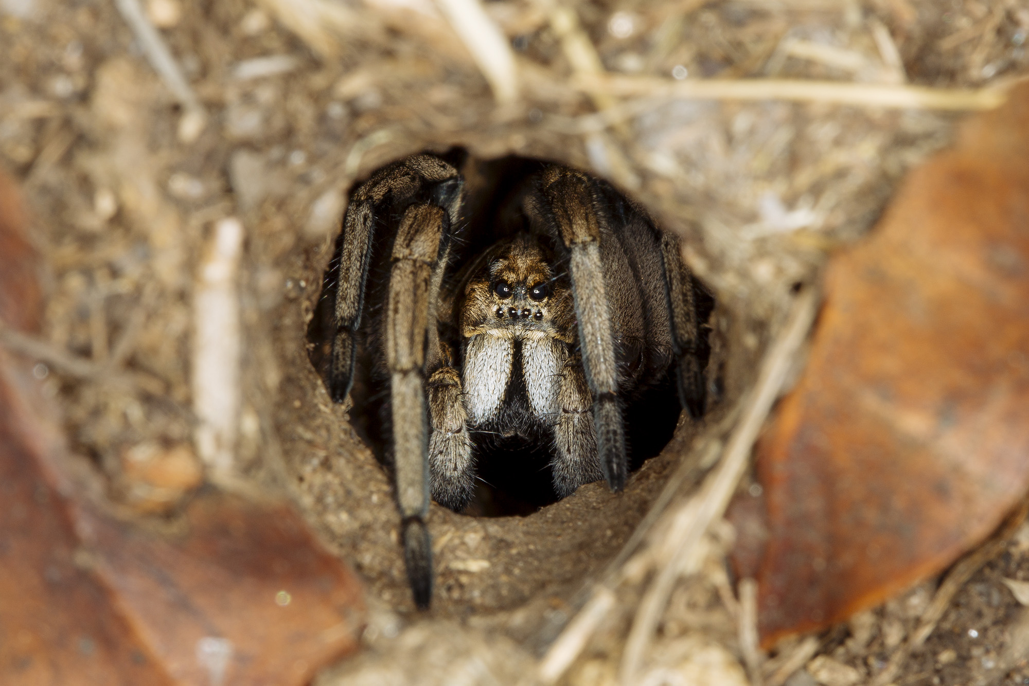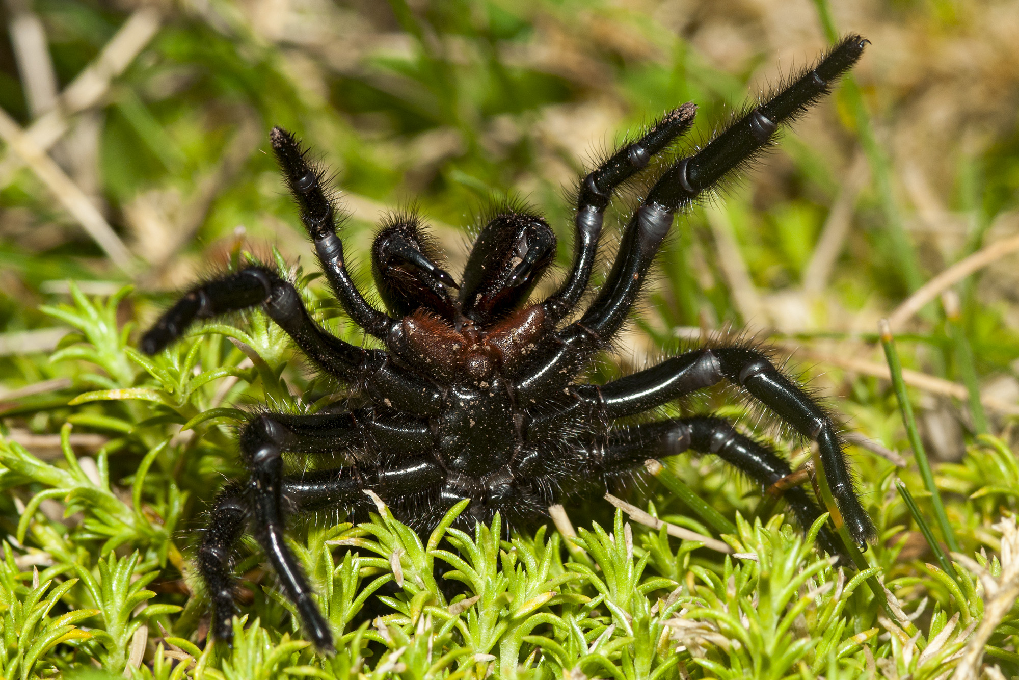 Mygalomorphs are typically stocky and spend most of their time on the ground foraging, or ambushing prey from a burrow.