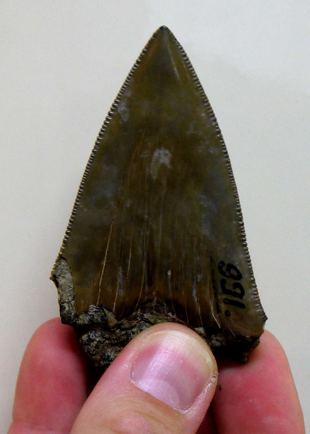 Even with this uncertainty, though, this is more information than palaeontologists usually have about interactions between animals in the fossil record. Information modern ecologists take for granted, such as who's eating who, is extremely rare to find for fossils. Bite marks like these are one of the few ways palaeontologists have any idea of how food webs may have been constructed way back when. But what's really cool about this particular whale/shark palaeo-interaction, is that rather than just being satisfied with 'this whale was attacked by a shark' we can actually figure out who the culprit was. A lot of work has been done on the geological unit that this specimen was collected from so we know what was sharing the waters with our luckless whale. Of the list of sharks known from the same unit, only one has teeth big enough to have made these marks: