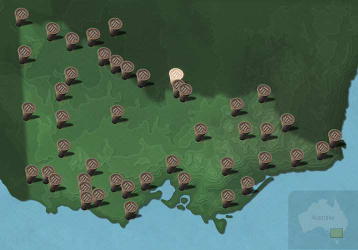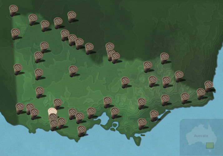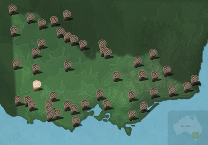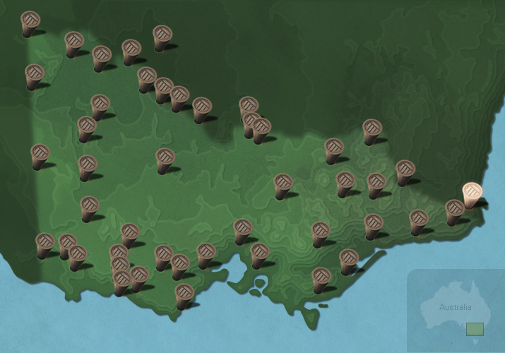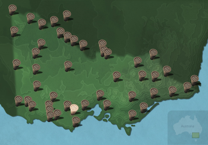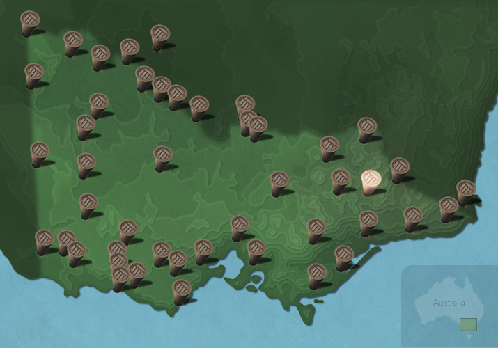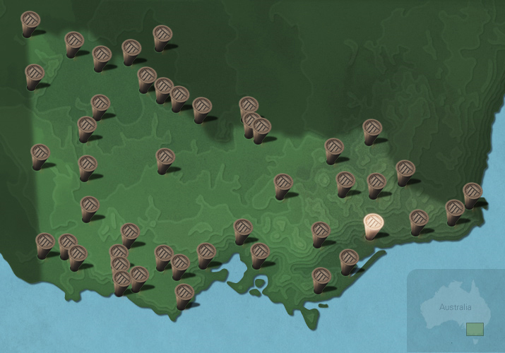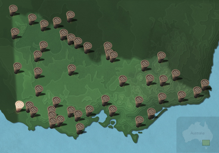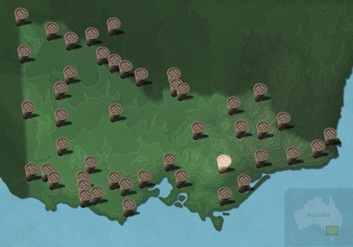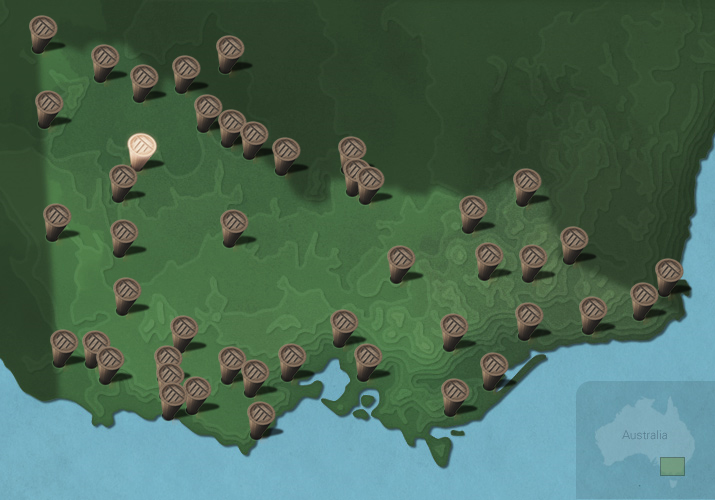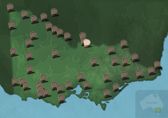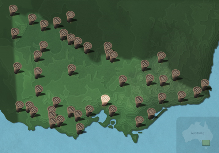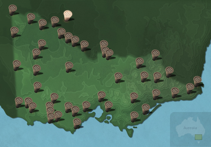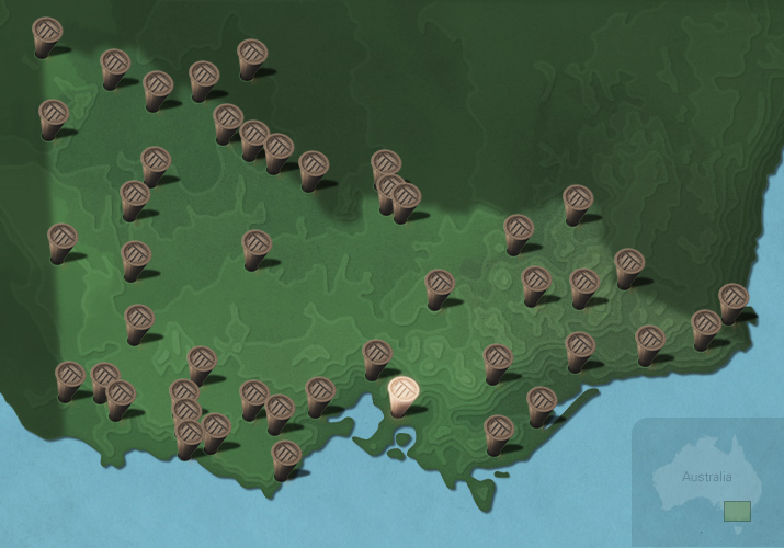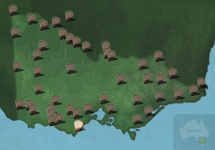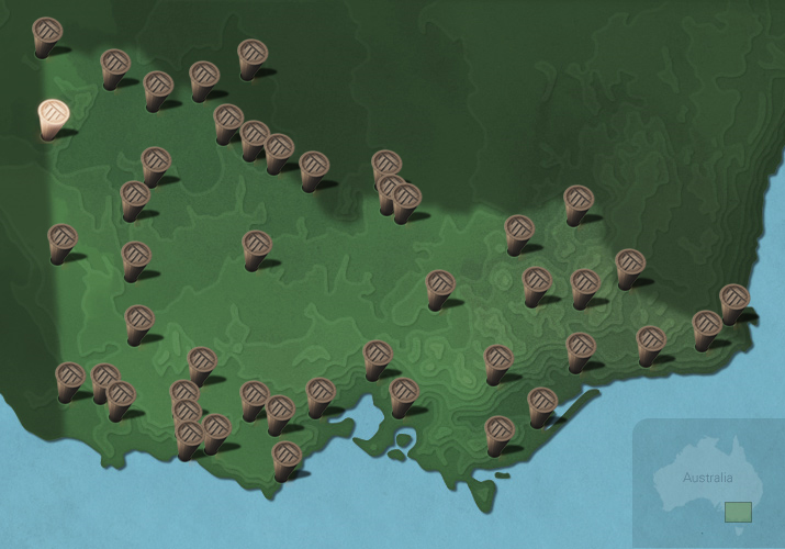 The maps below show the diversity of languages of Victorian Aboriginal people. Each message stick is located within the Country connected to that language.
