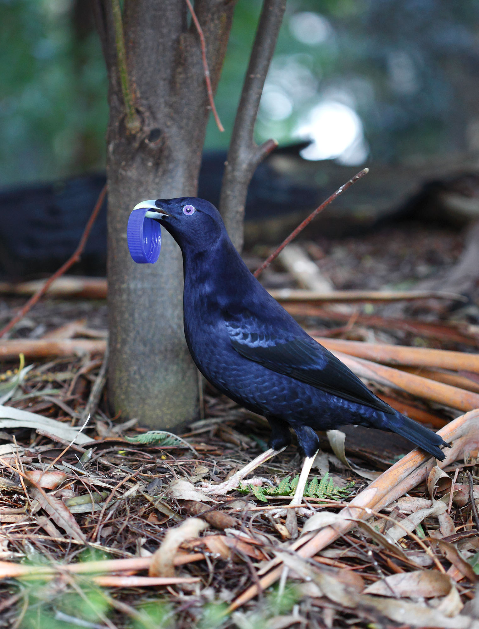 The next time you visit the Forest Gallery at Melbourne Museum be on the look out for the resident Satin Bowerbirds. If you're lucky, you'll see them adorning their bower with blue objects.
