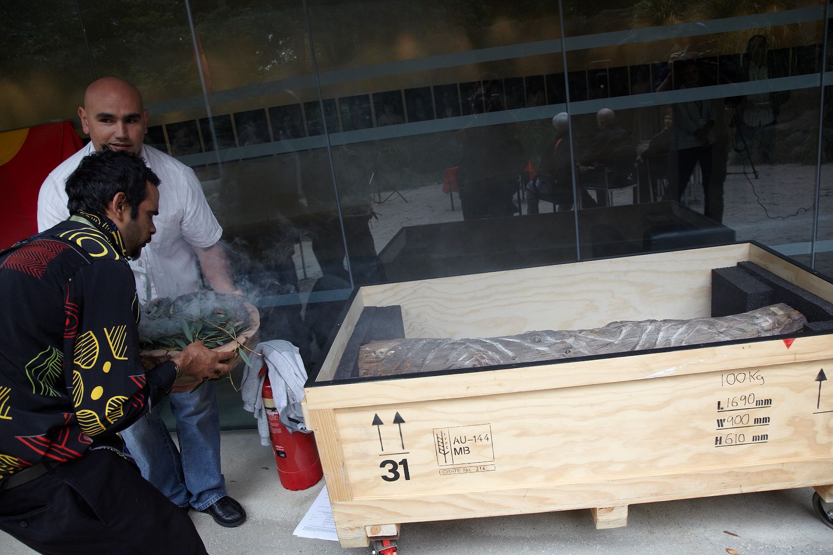 A carved burial tree was returned to traditional owners at a ceremony at Bunjilaka Aboriginal Cultural Centre, Melbourne Museum on the 13 April 2010.