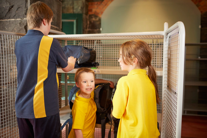 Then we will go into a room with walls made of stone and I will put my bag on a big metal trolley. The museum staff member will put the trolley away so I know my bag and all the things inside it are safe. I will get my bag back when my museum visit is finished.