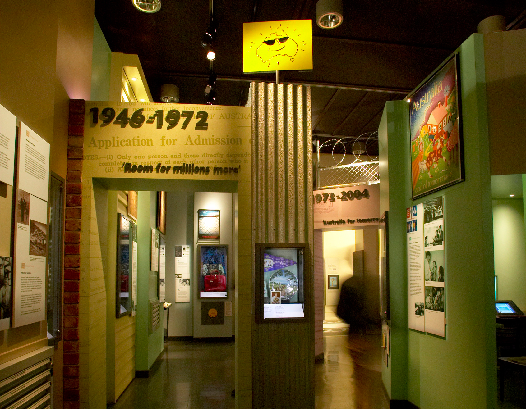 Head upstairs and along the hallway to experience The Welcome – multimedia artist Lynette Woolworth’s installation that recreates the experience of a new migrant. Will you be welcomed?