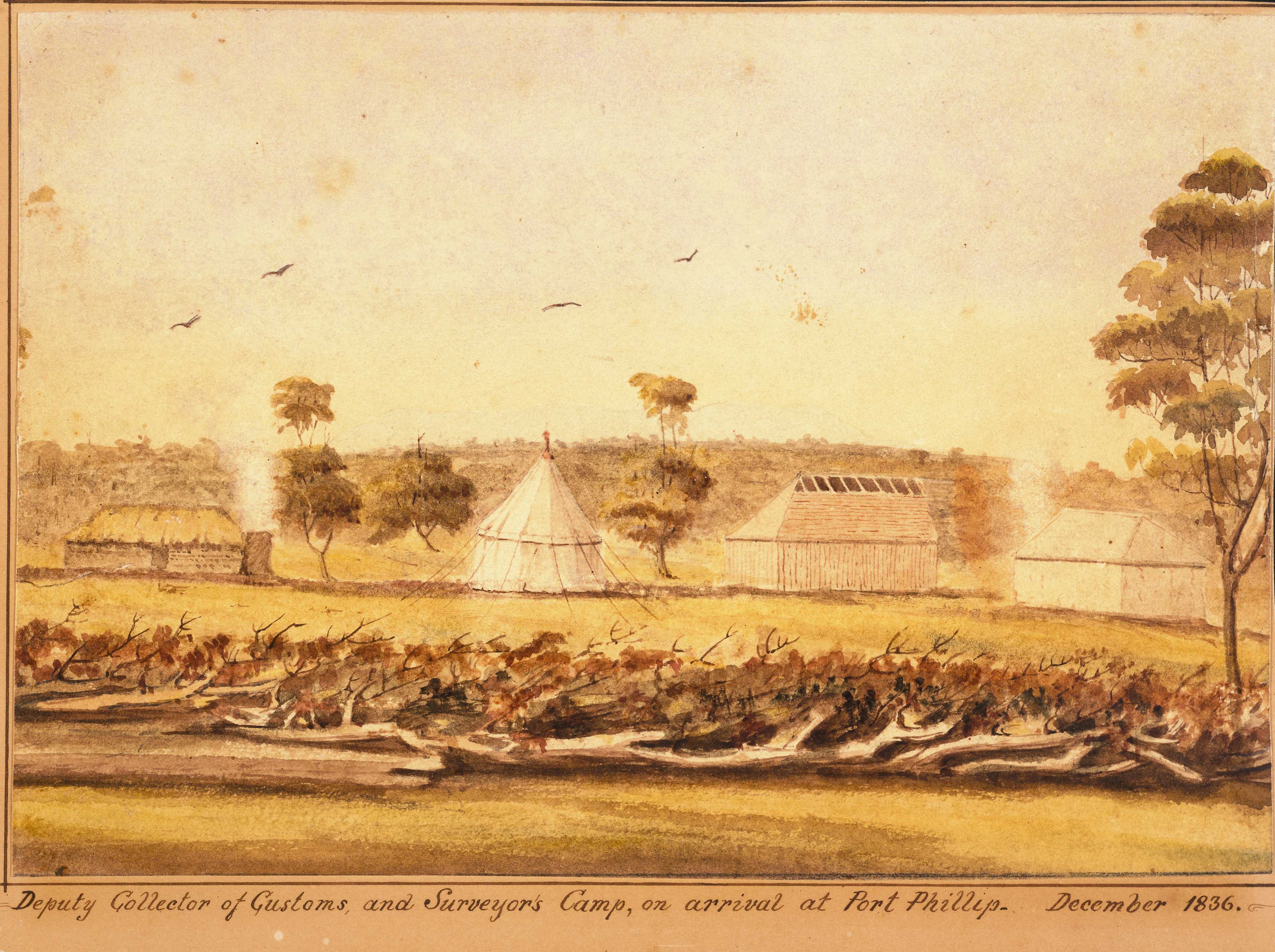 Robert Webb established his customs house in a round white tent pitched beside the Yarra River, close to where the boats unloaded their stock and supplies.