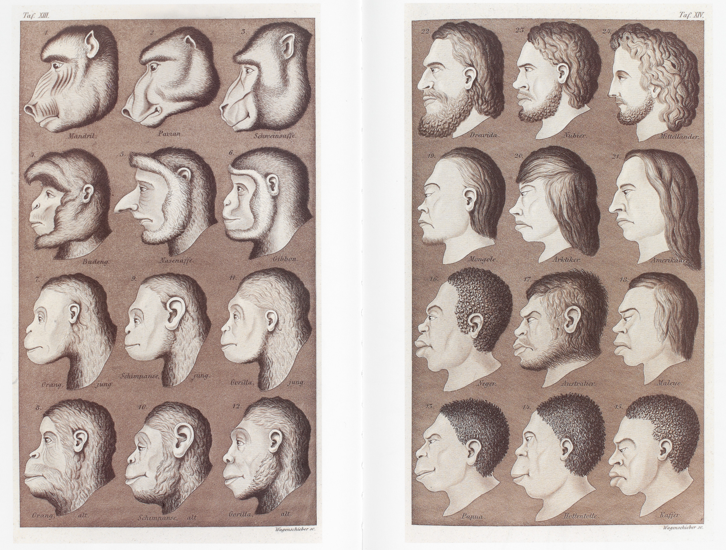 A close relationship between the 'worst' of the human races and the 'best' of the apes is claimed by German scientist Ernst Haeckel in Natürliche Schöpfungsgeschichte.