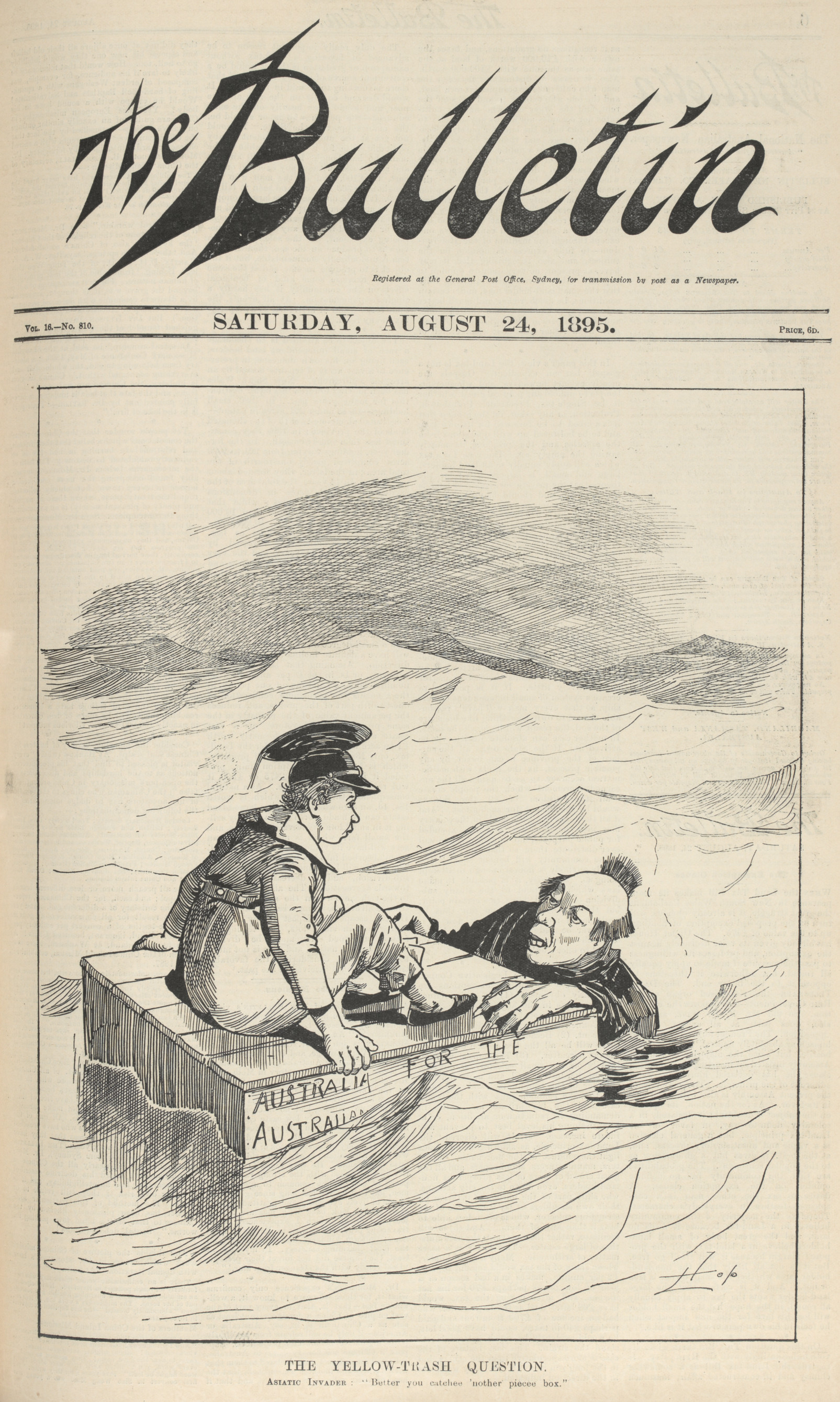 The phrase 'White Australia policy' first appears in William Lane's publication The Boomerang in Brisbane.
