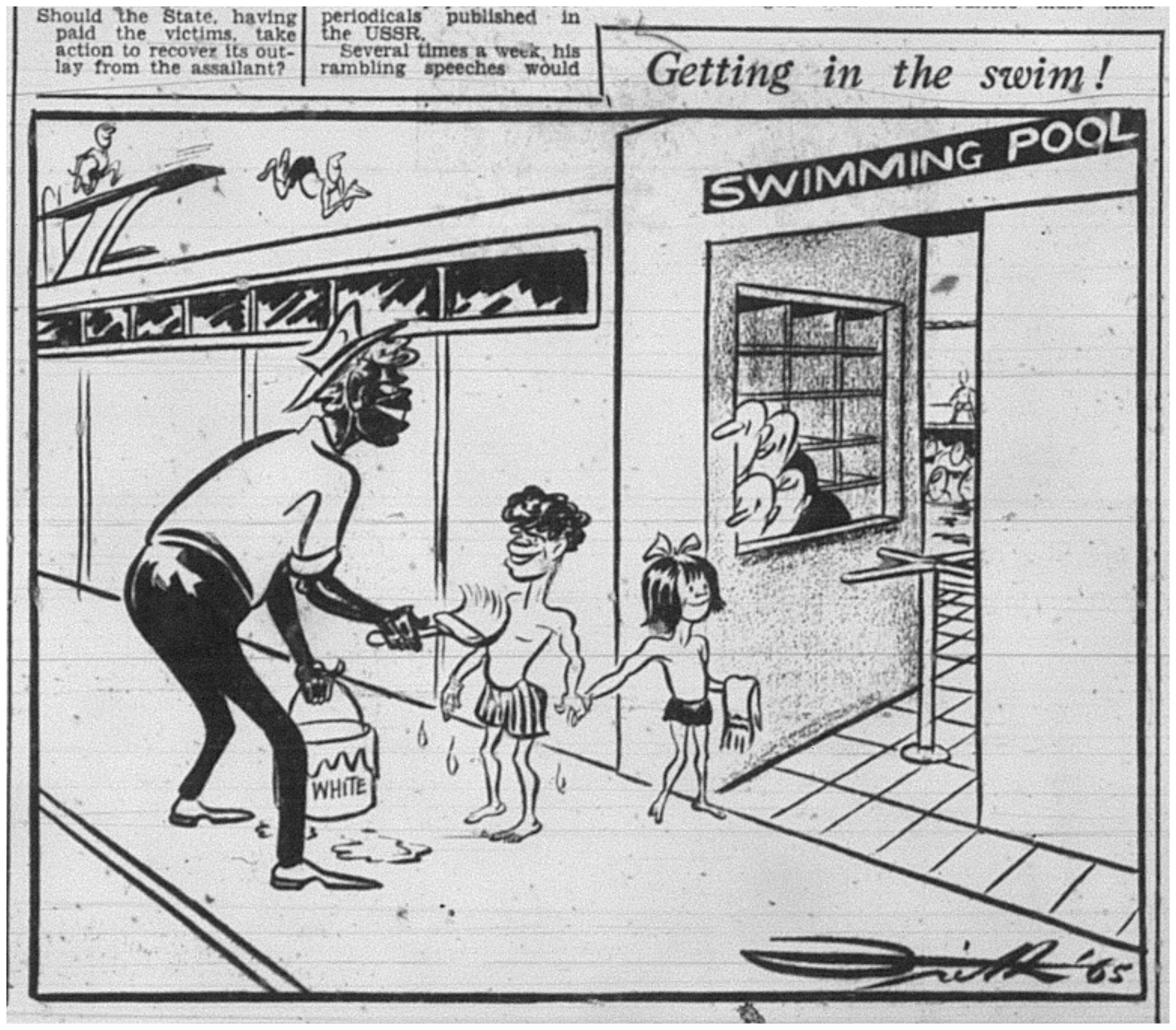 A policy of legal racial segregation, known as apartheid, is enforced by the National Party government of South Africa until 1994. In Australia, segregation is imposed unofficially in public places such as theatres and swimming pools.