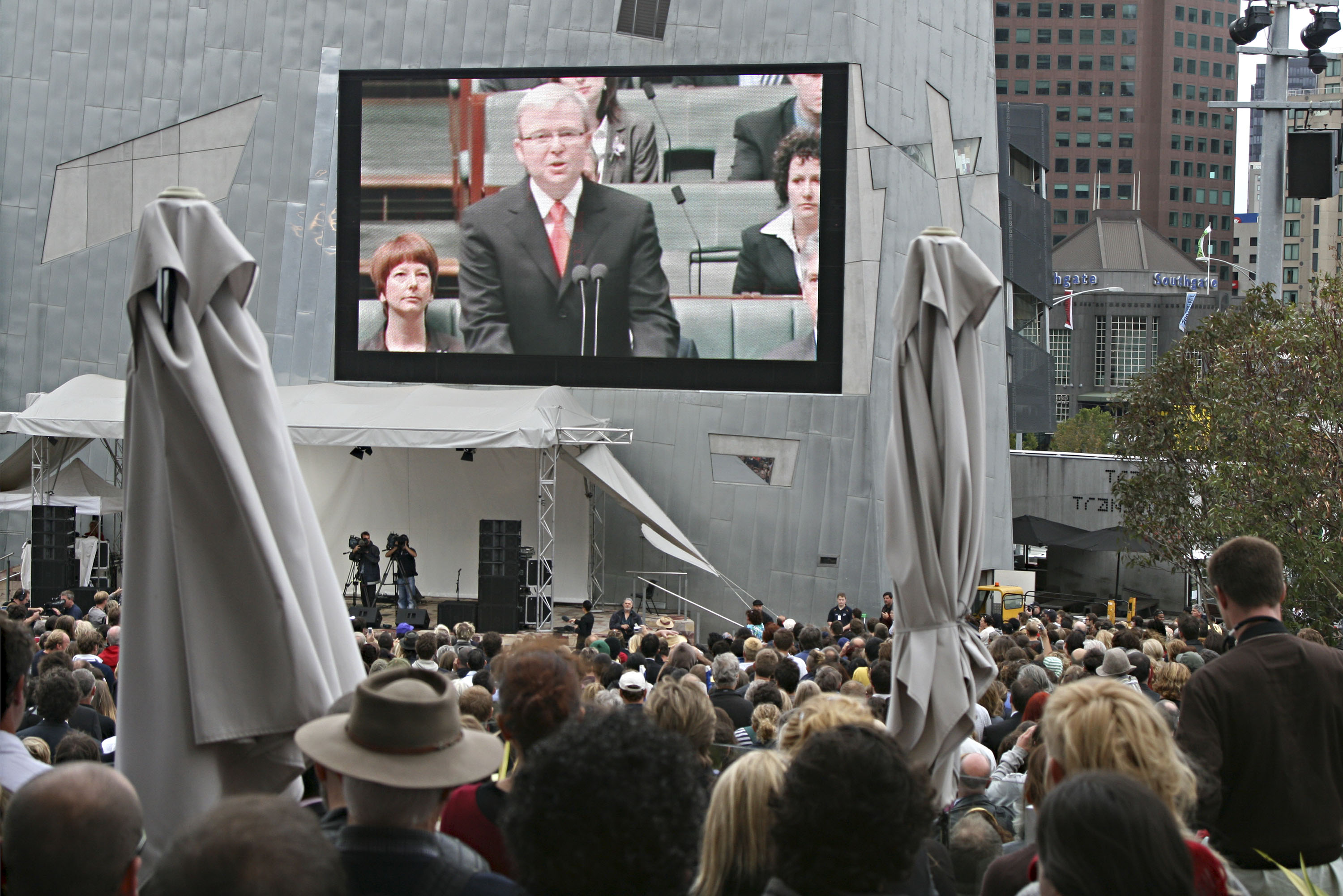 Prime Minister Kevin Rudd apologises to the Stolen Generations: 'We apologise especially for the removal of Aboriginal and Torres Strait Islander children from their families, their communities and their country.'
