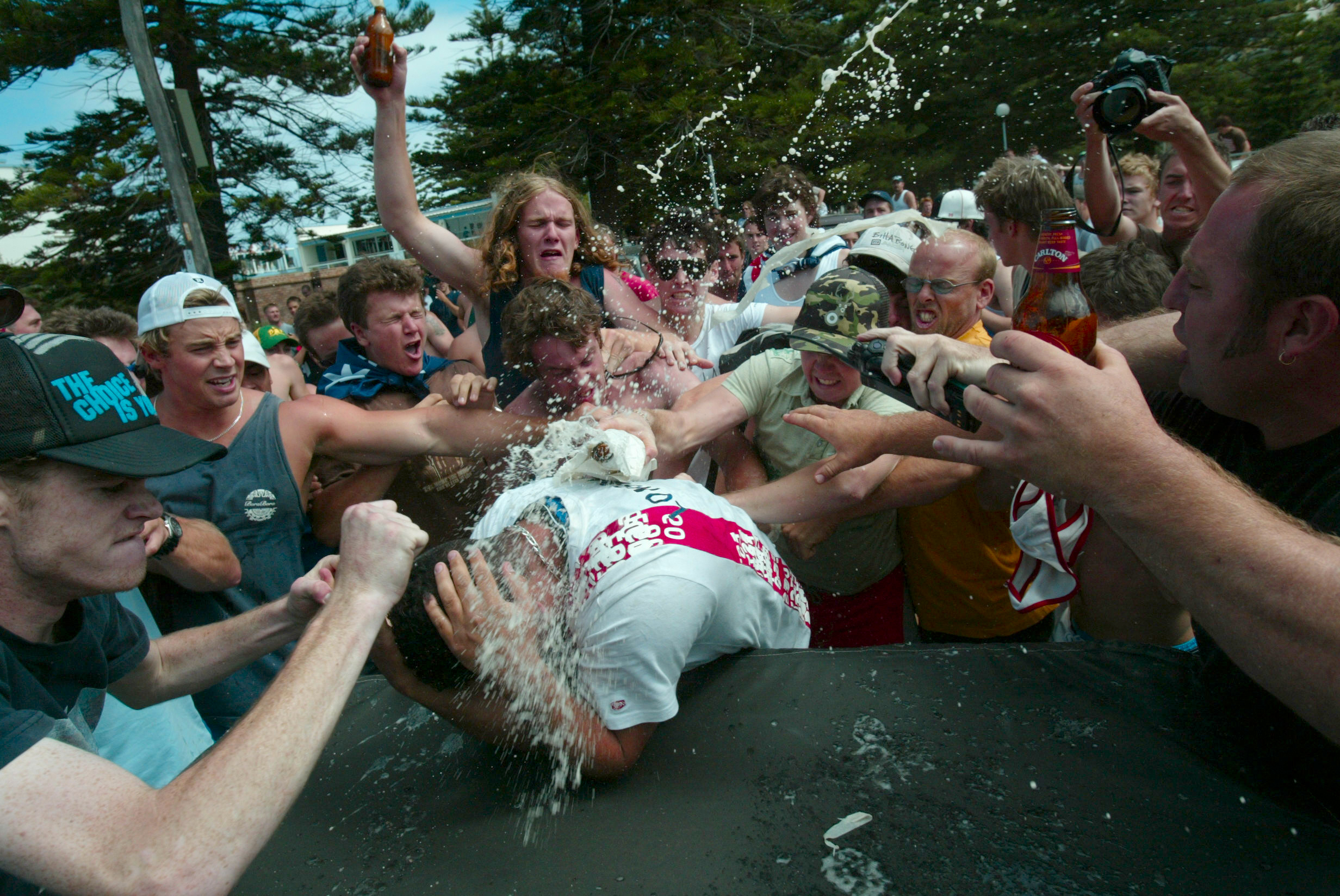 A rally in support of local life savers escalates into a riot at Cronulla, New South Wales due to tensions between local Anglo-Australian residents and Lebanese Australians from south of Sydney. Prior to the rally, radio broadcaster Alan Jones announces: 'My suggestion is to invite one of the biker gangs to be present in numbers at Cronulla railway station when these Lebanese thugs arrive. It would be worth the price of admission to watch these cowards scurry back onto the train for the return trip to their lairs... Australians old and new shouldn’t have to put up with this scum.'