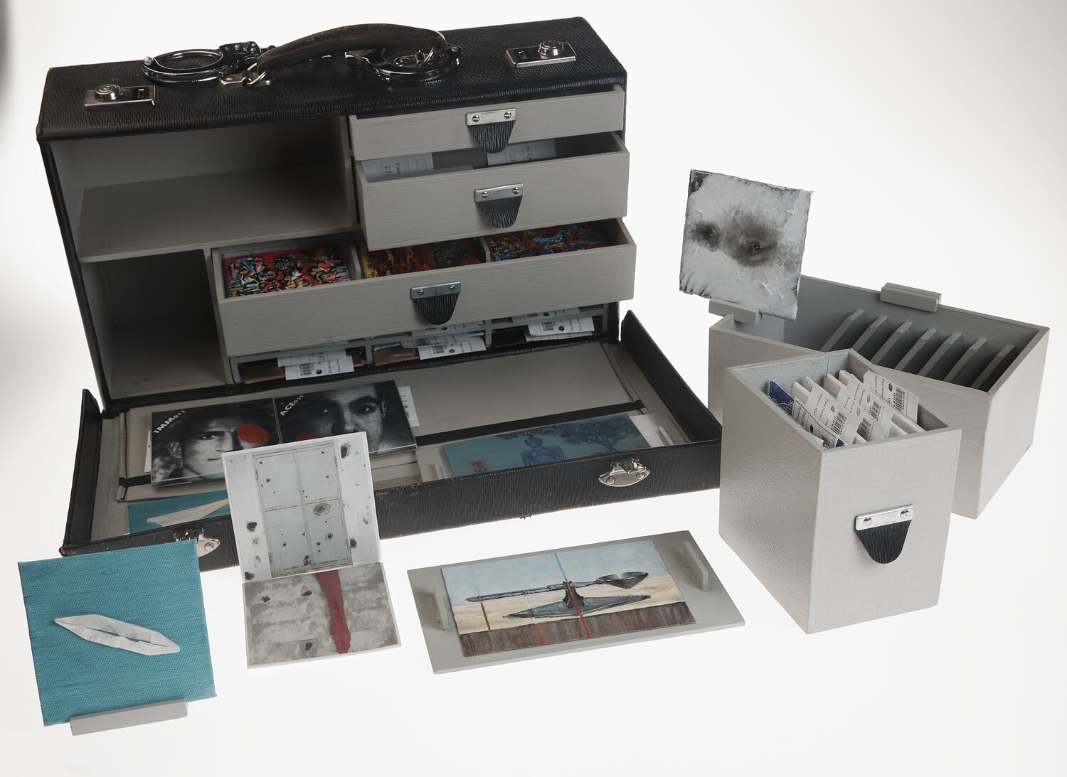 Attache Case now consists of 41 miniature artworks by 21 artists, contained in a re-purposed doctor’s medical case once used by Peter’s uncle to make house calls. Sixteen of the artists also provided photographic portraits of themselves. The works explore diverse issues about detention, Australian immigration and refugee policies, political injustices, lives in limbo and resettlement. The project poignantly captures the personal experiences of people who have sought refuge in Australia and gives voice to those who are seldom heard or seen.