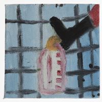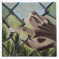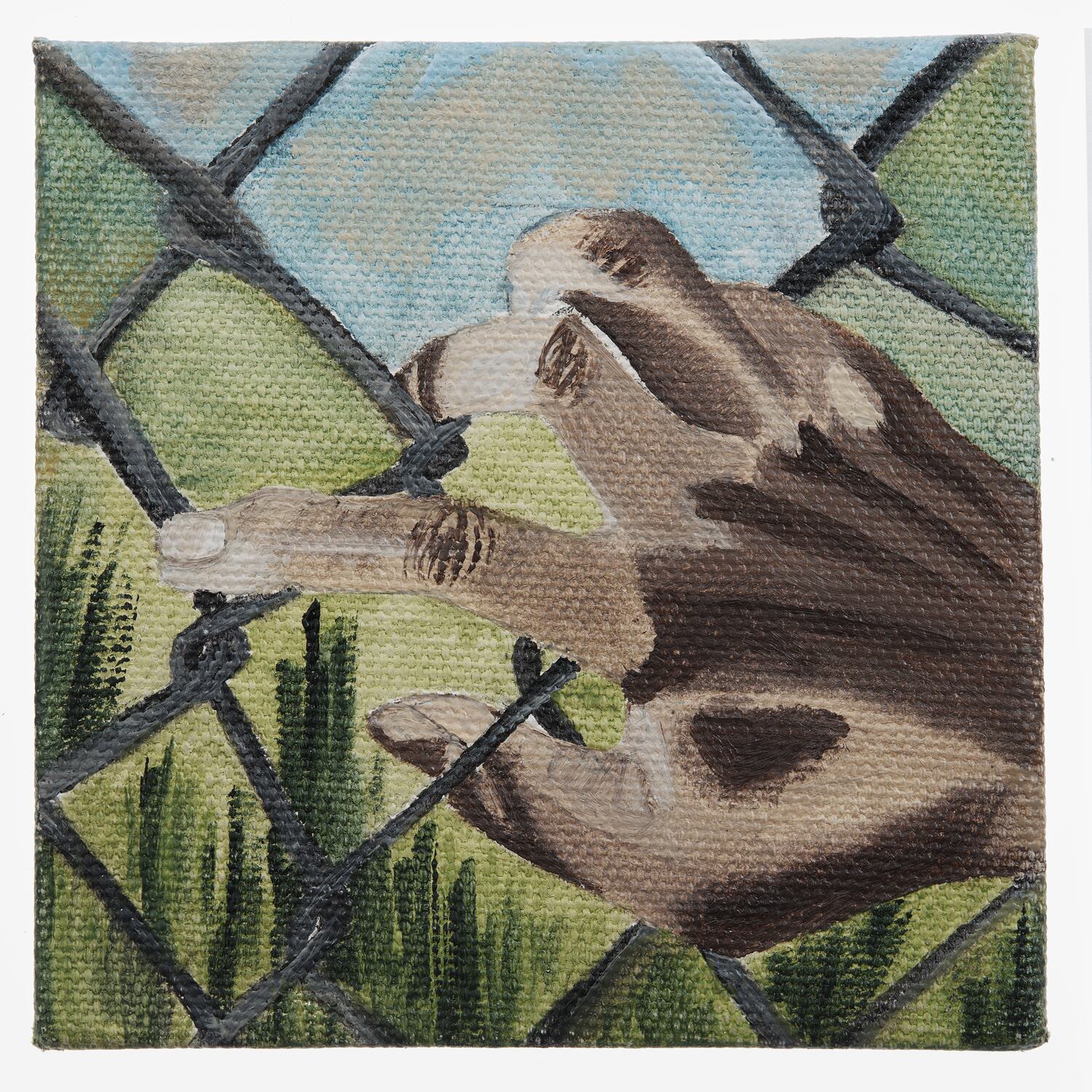 Recurring images of solitary figures in endless limbo, silenced and unheard are conveyed by a number of artists including Gyorgyi Marek (Hungary) in No eye, no mouth, no will. Sriharan Ganeshan (Sri Lanka) paints a a security guard kicking a milk bottle, a symbol of the trauma inflicted on children in detention (Child in Camp).