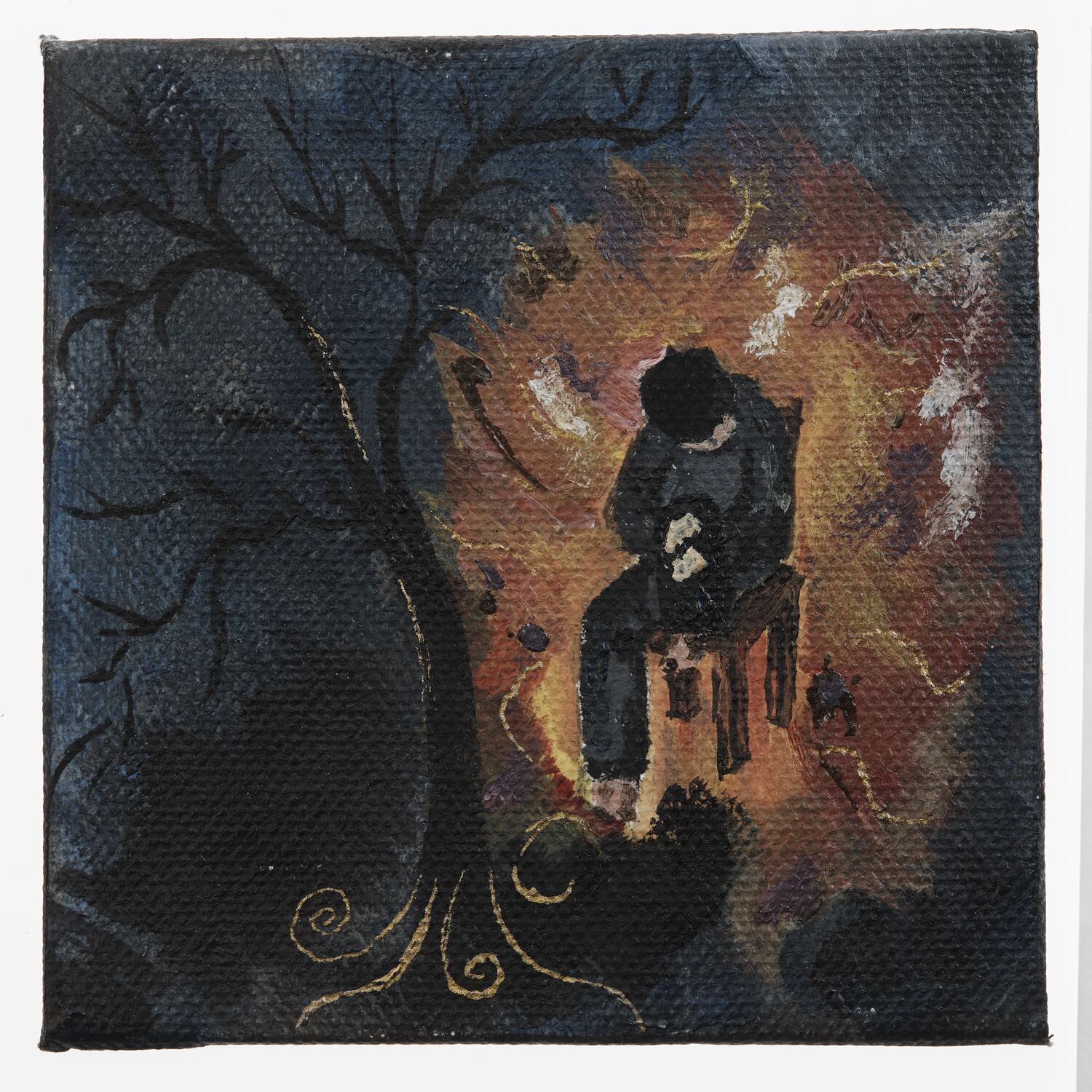 Many artists wrote titles, explanations and messages on the reverse of their artworks which range from hope to anger to despair. Tadros Hanna asks the viewer: ‘Our journey starts inside our heart. My journey is a journey from pain to hope. What about yours?' While Noony writes: ‘When one accepts death. Only then they will hear the Song of Silence.’
