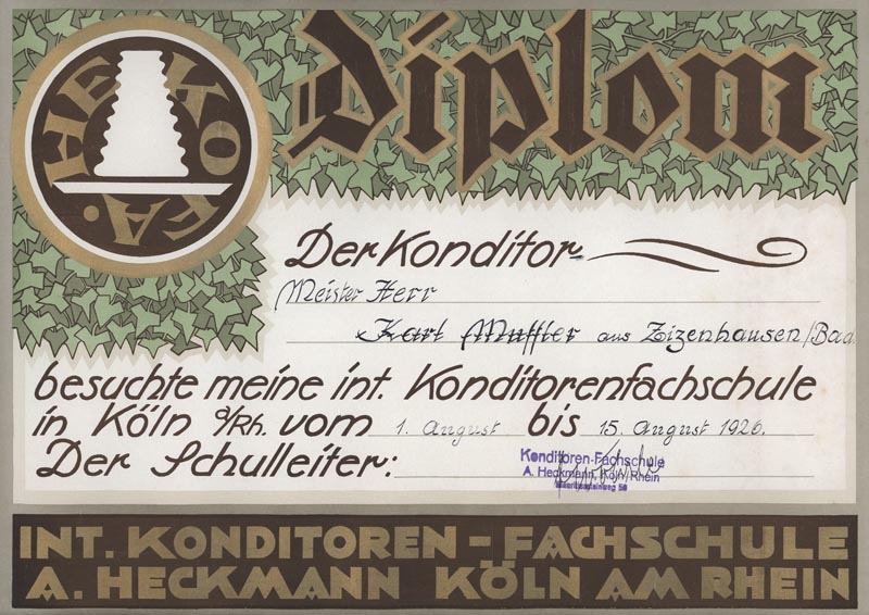 Karl Friedrich Muffler was born in 1900 in south-west Germany. As a teenager, he decided to pursue a career in confectionery craft.