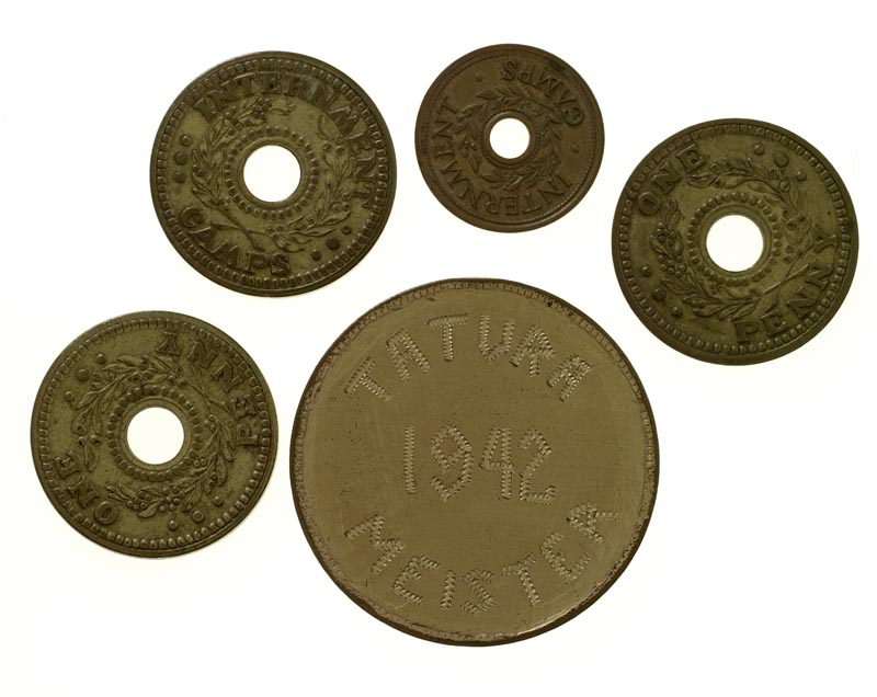 Internees were usually separated from their families and tried to find ways to keep themselves occupied. They set up their own study classes, theatre groups and market gardens, and were issued 'internment currency' in order to purchase goods within the camp grounds.