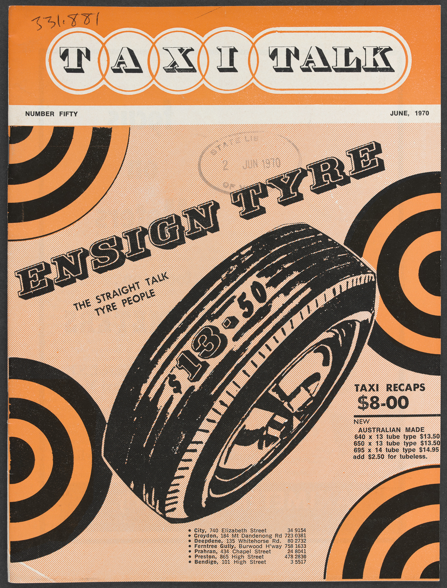 Taxi Talk magazine was established as a monthly trade journal for the taxi industry. It provides a unique insight into the changing face of the Victorian taxi industry from 1966 to the present day.