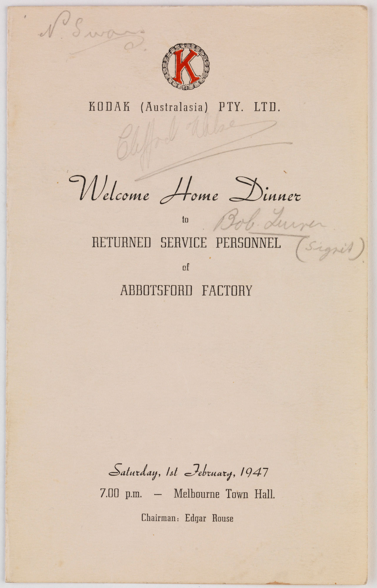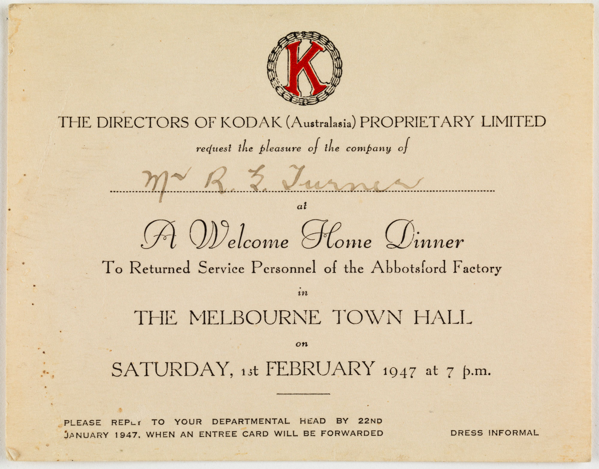 Museums Victoria Kodak Heritage Collection, HT 48213 Oral history interview with Rouse family, 5 Apr 2016; HT 35771, Newsletter - 'Australian Kodakery', No 55, Nov-Dec 1974, p.3; HT35911 newspaper clipping Herald, 17 July 1957 and The Age 18 July 1957; HT 35911, Speech Notes - Kodak Australasia Pty Ltd, Edgar Rouse Opening Address, Press Conference to Announce Expansion Programme, 1957; The History of Kodak in Australia, Nigel Beale (unpublished, 1983)