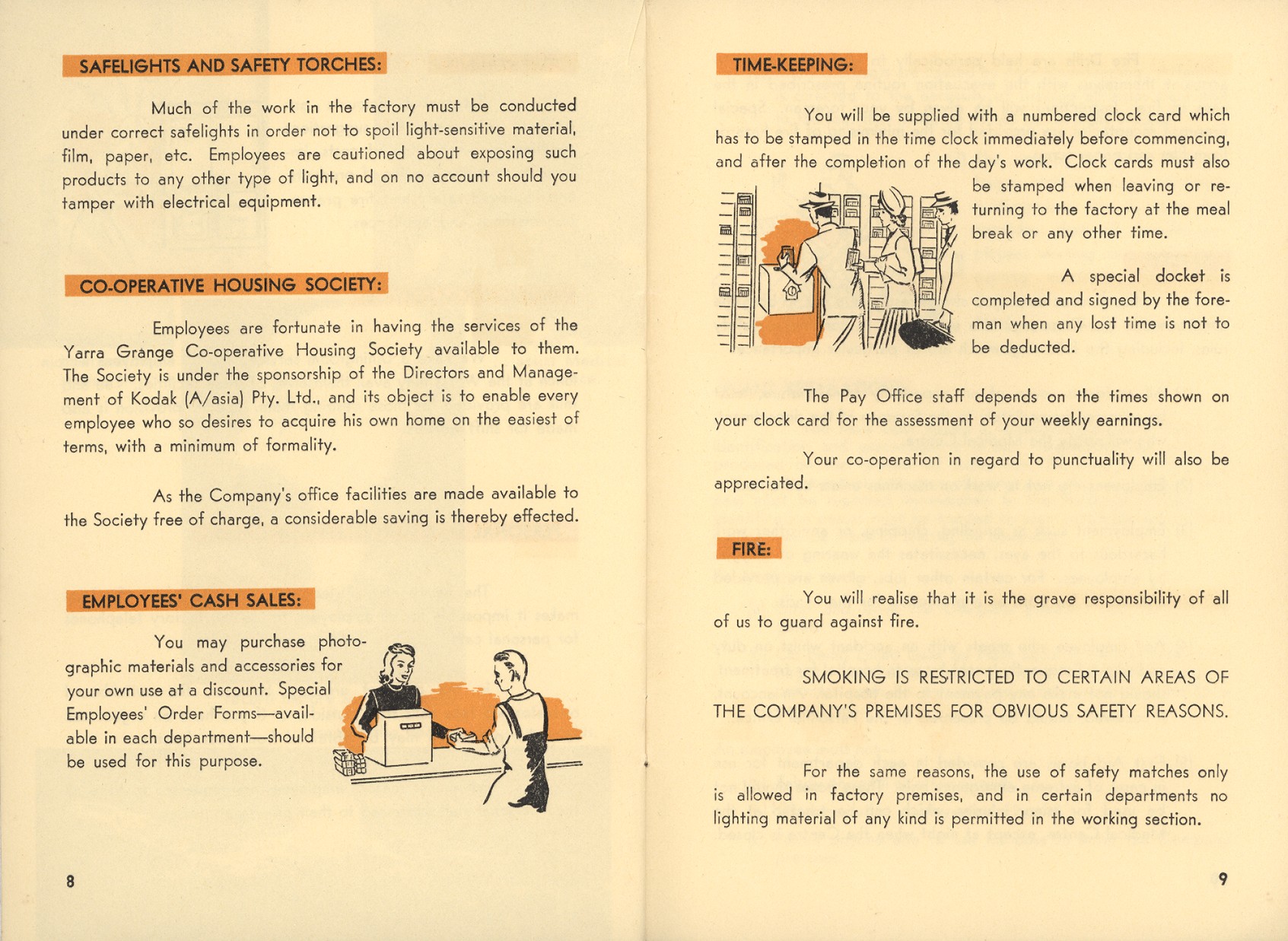 During Edgar Rouse’s leadership, various benefits were continued and new ones introduced for workers at Kodak. These included superannuation and life insurance, a co-operative housing society, and staff discounts on Kodak products. Company booklets outlined these for staff.