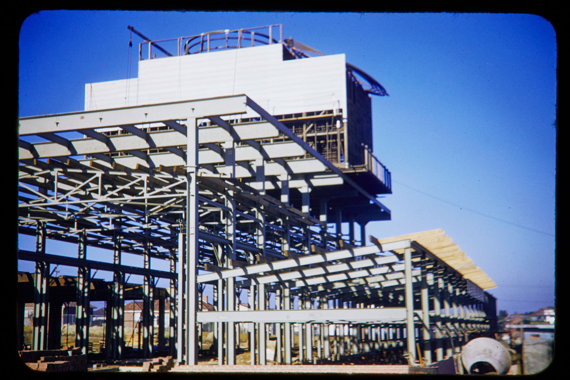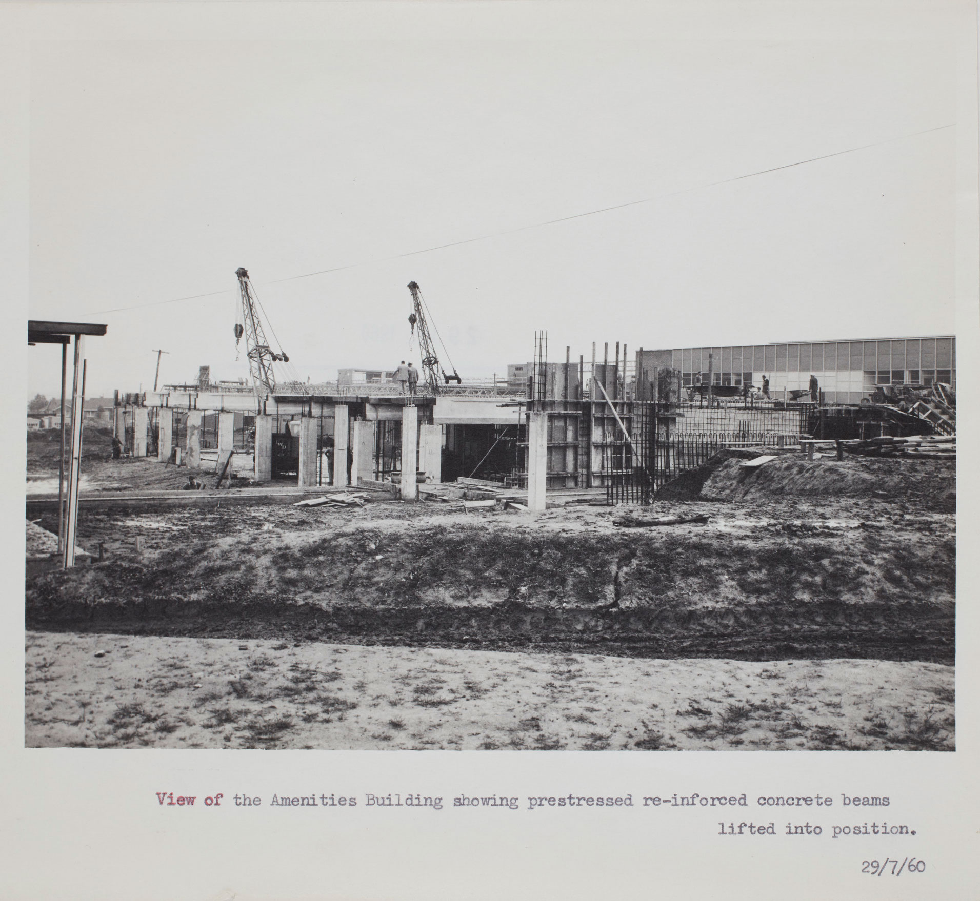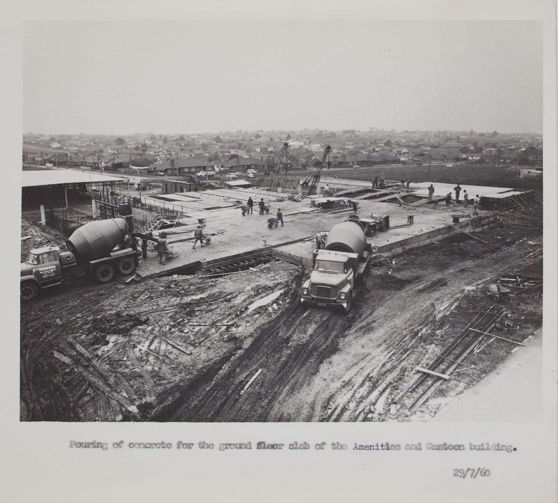 Rapidly emerging from the landscape and enormous in scale, construction of the Coburg factory was delivered in stages, with departments transferring from Abbotsford as their new facilities became ready at Coburg. In 1959, the first building was occupied on the site. This was the Powerhouse, which was integral to providing services to the growing factory, and soon after this, X-Ray, Sheet Film, and Roll and Movie staff were transferred to Coburg.