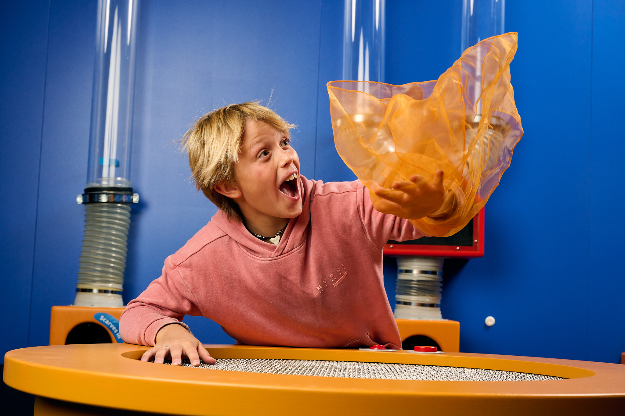 Whoosh, swirl, gust, squish, flow and float your way through the chaos of the ultimate learning playground. Levitate objects in mid-air, slurp the vibrant flags through a controllable network of suctioning pipes, bounce on the giant inflated tentacle sculpture, launch balls sky-high with compressed air and craft soaring paper planes. The sky’s the limit!