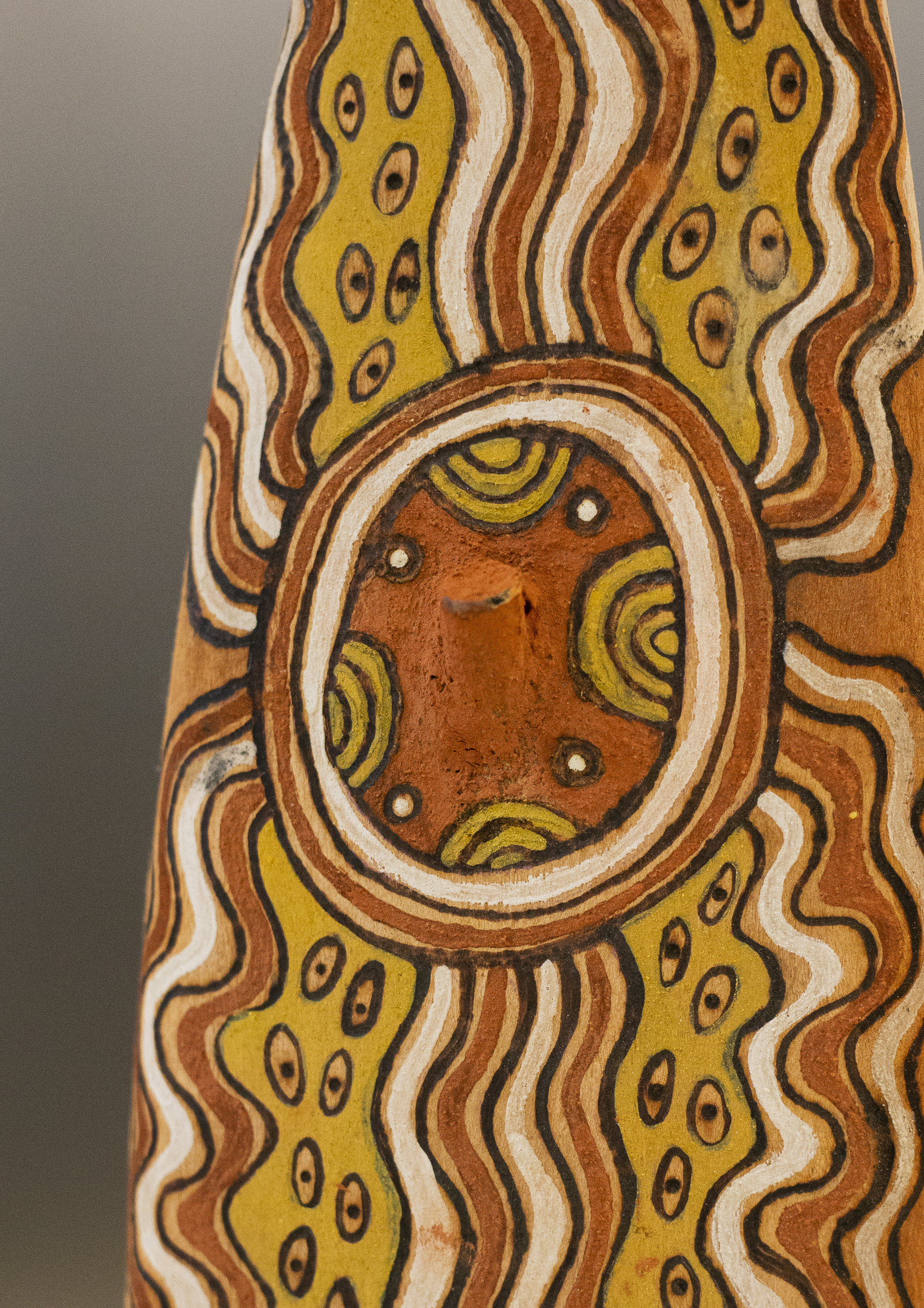 In Aboriginal culture, land and language are inextricably linked. Language is directly connected to place, through the mimicry of animals and nature in dance; the visual language in body art, motifs and symbols in stone etchings, sand paintings and ceremonial ornaments, music and sound vocalisation; and the naming and relationship of all things, embodying the interconnectedness of our existence.