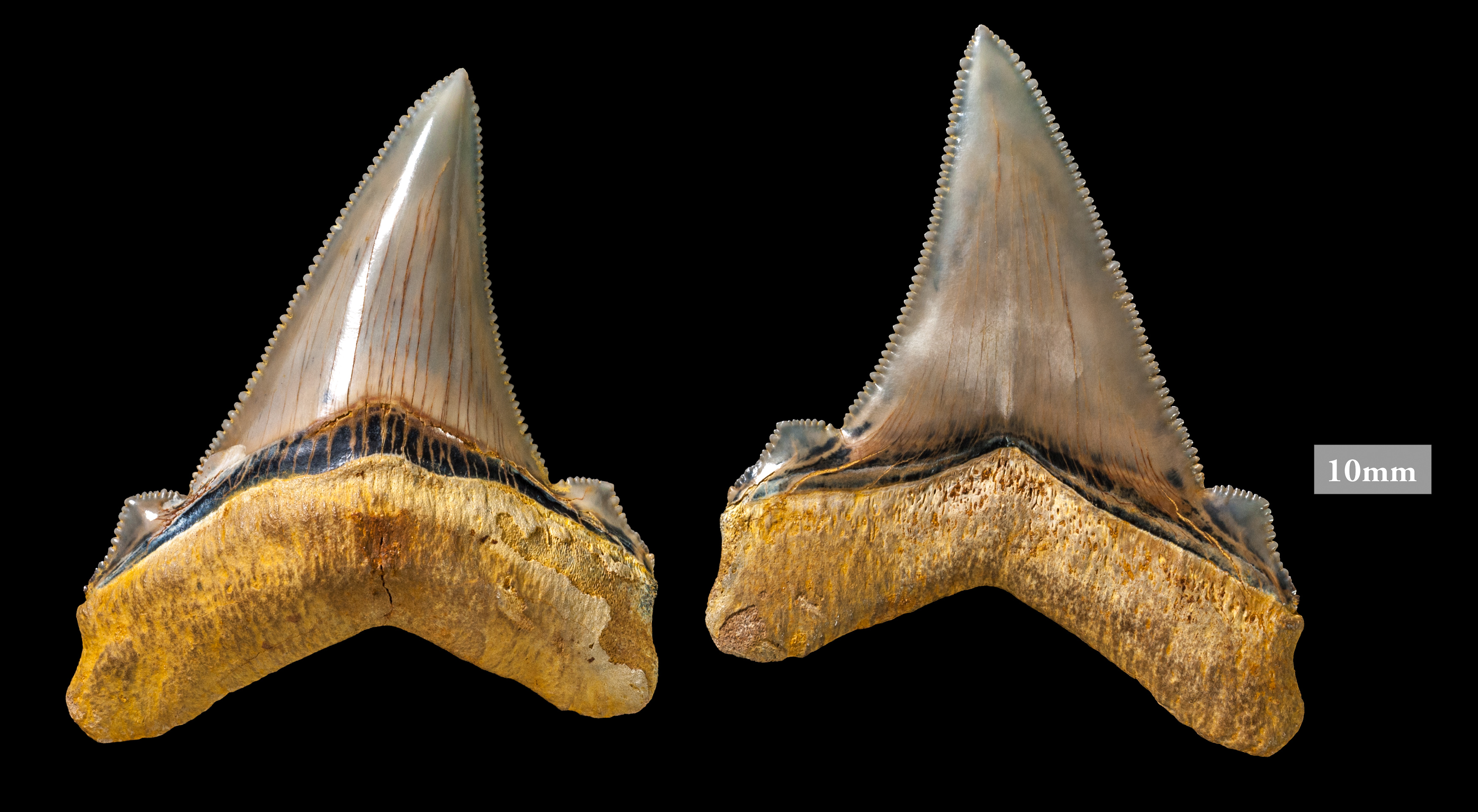 According to Museums Victoria palaeontologist Tim Ziegler, these teeth came from several different individuals and would have become dislodged from their jaws as they fed on the huge carcass of the Carcharocles angustidens after it died.