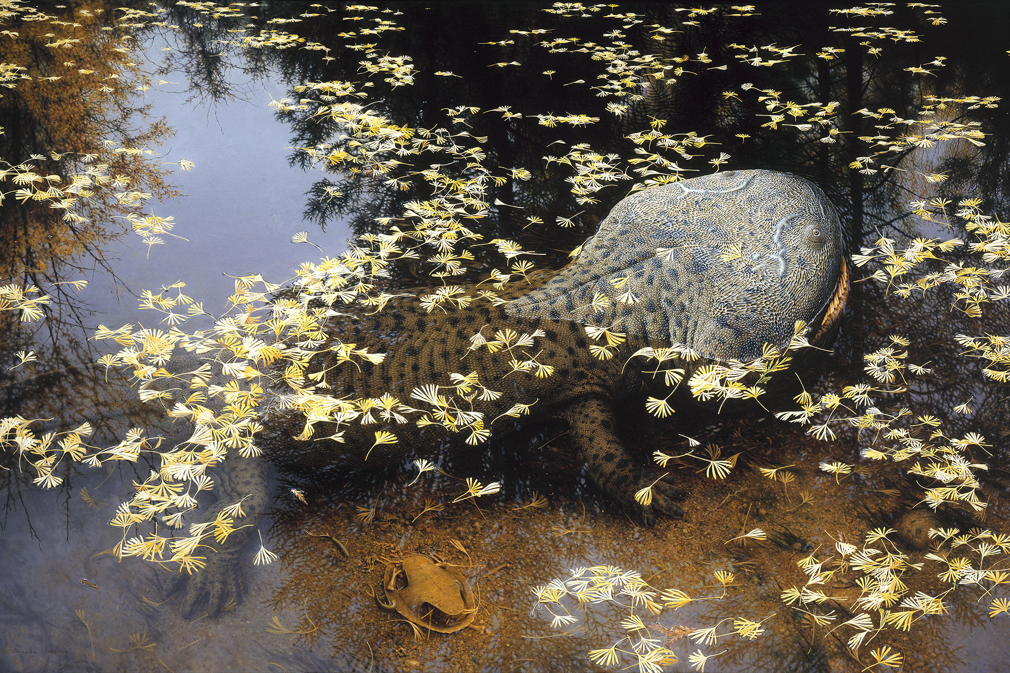 Koolasuchus cleelandi was a car-sized amphibian that lived alongside dinosaurs in Victoria during the Cretaceous period approximately 125 million years ago. Resembling something between a huge newt and a crocodile, Koolasuchus was adapted to life in the rushing rivers that once separated Australia and Antarctica. Fossils of the extinct amphibian have only been found at a few beaches and coves in South Gippsland on Bunurong Country.