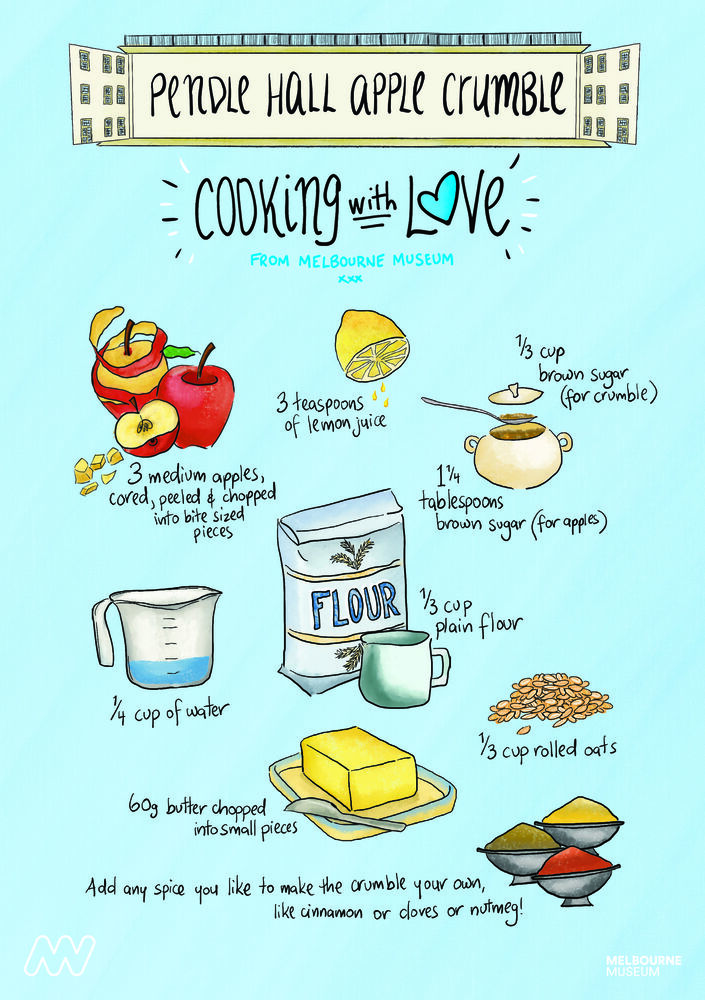 “The Mini Mega Model Museum at Melbourne Museum has inspired me to bake this crumble! As a former Tasmanian from the Apple Isle, not only the Pendle Hall Larder, but the wax fruit apples in the exhibition are close to my heart.”