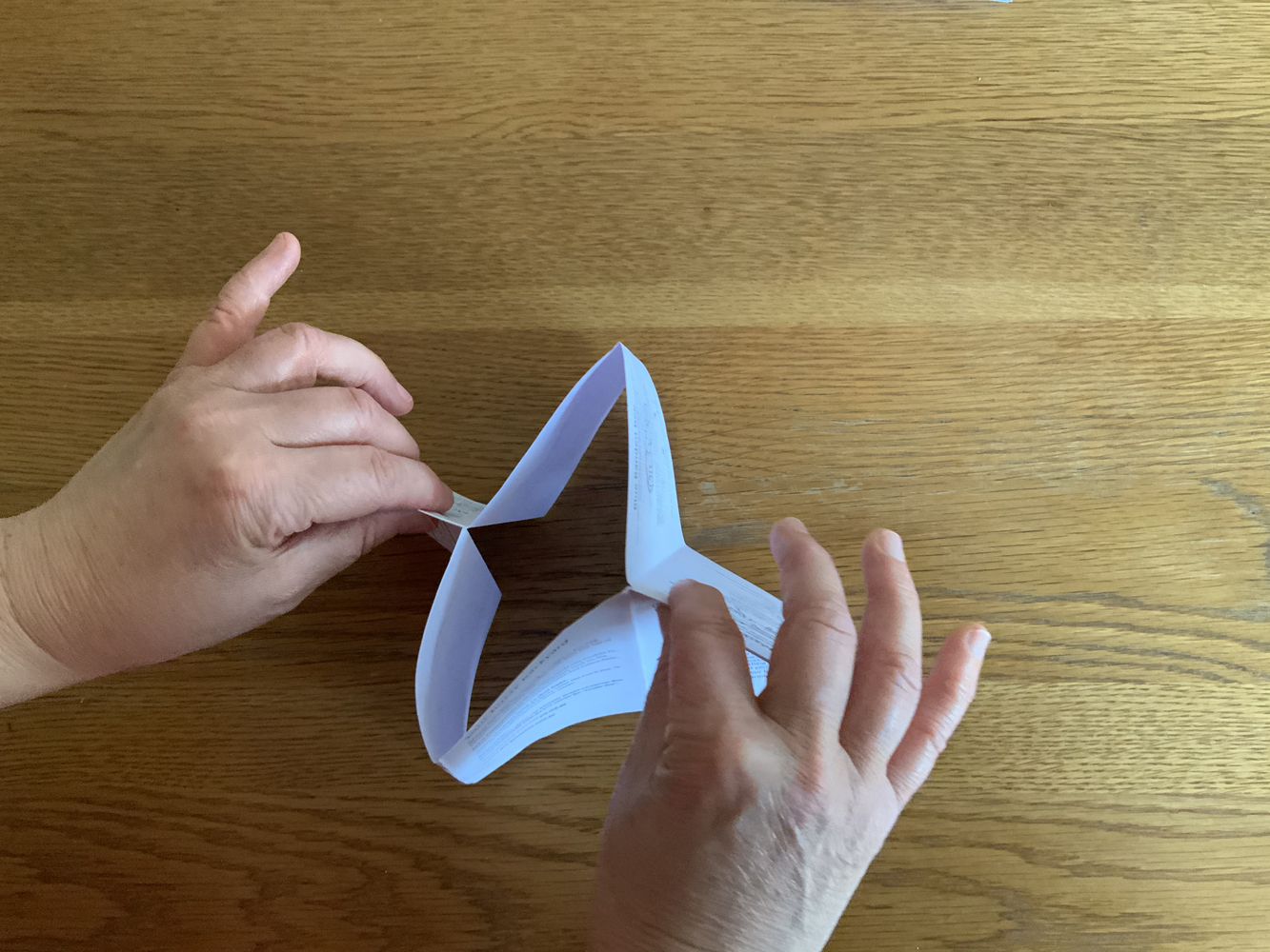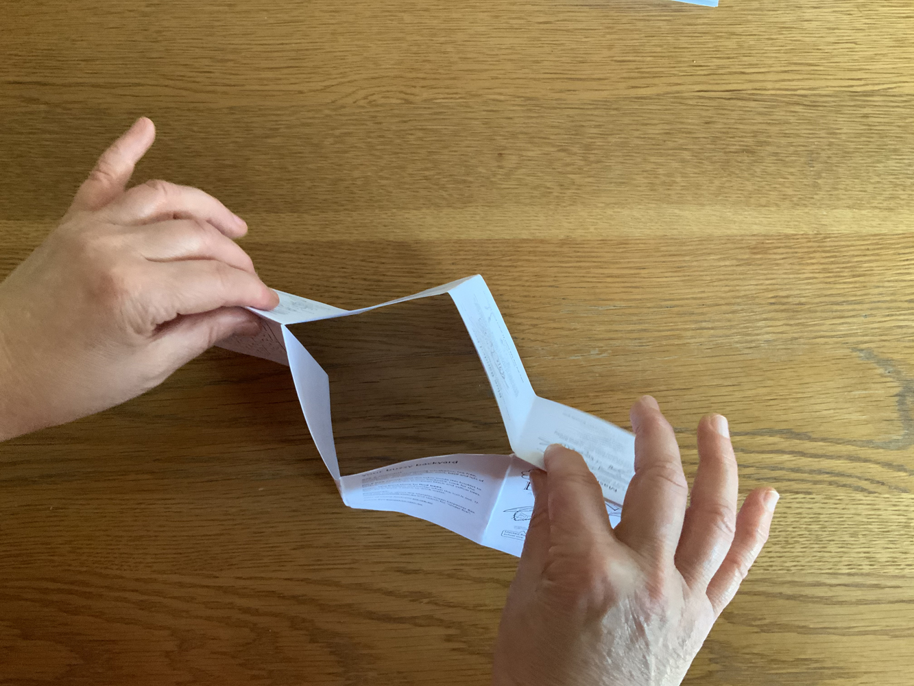 8. Push together, so a diamond opening forms – then keep pushing till it starts folding: