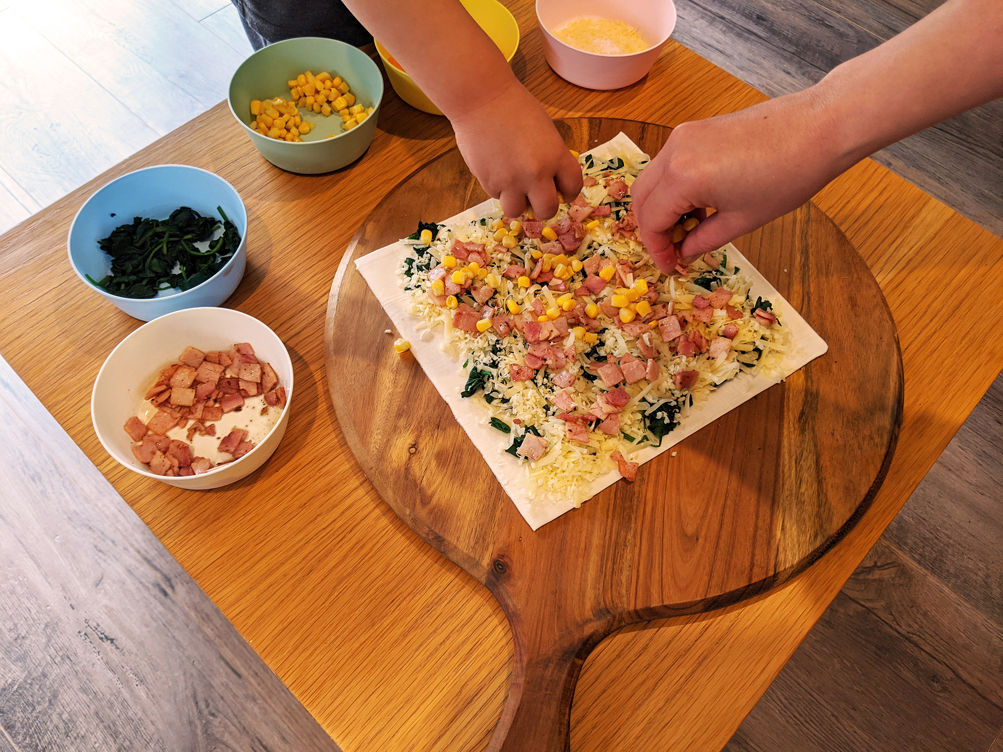- Shop for the ingredients together. Why are ingredients kept where they are – pastry in the freezer; cheese in the fridge? What do the carrots/corn/spinach feel and smell like?