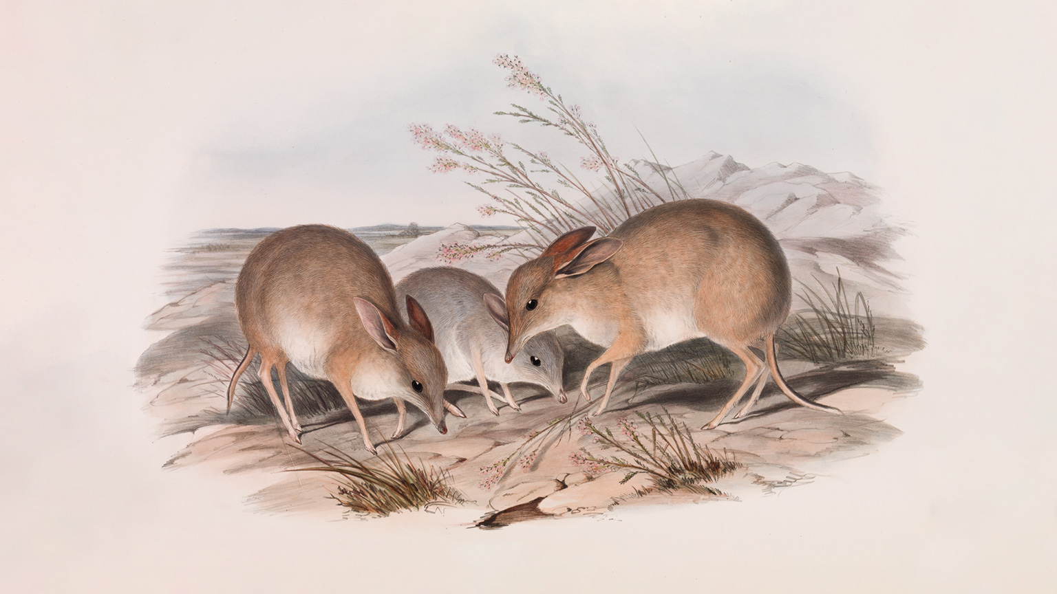 Pig-footed Bandicoot, Chaeropus ecaudatus – Artist: John Gould, Lithographer: H.C. Richter, Source: Museums Victoria