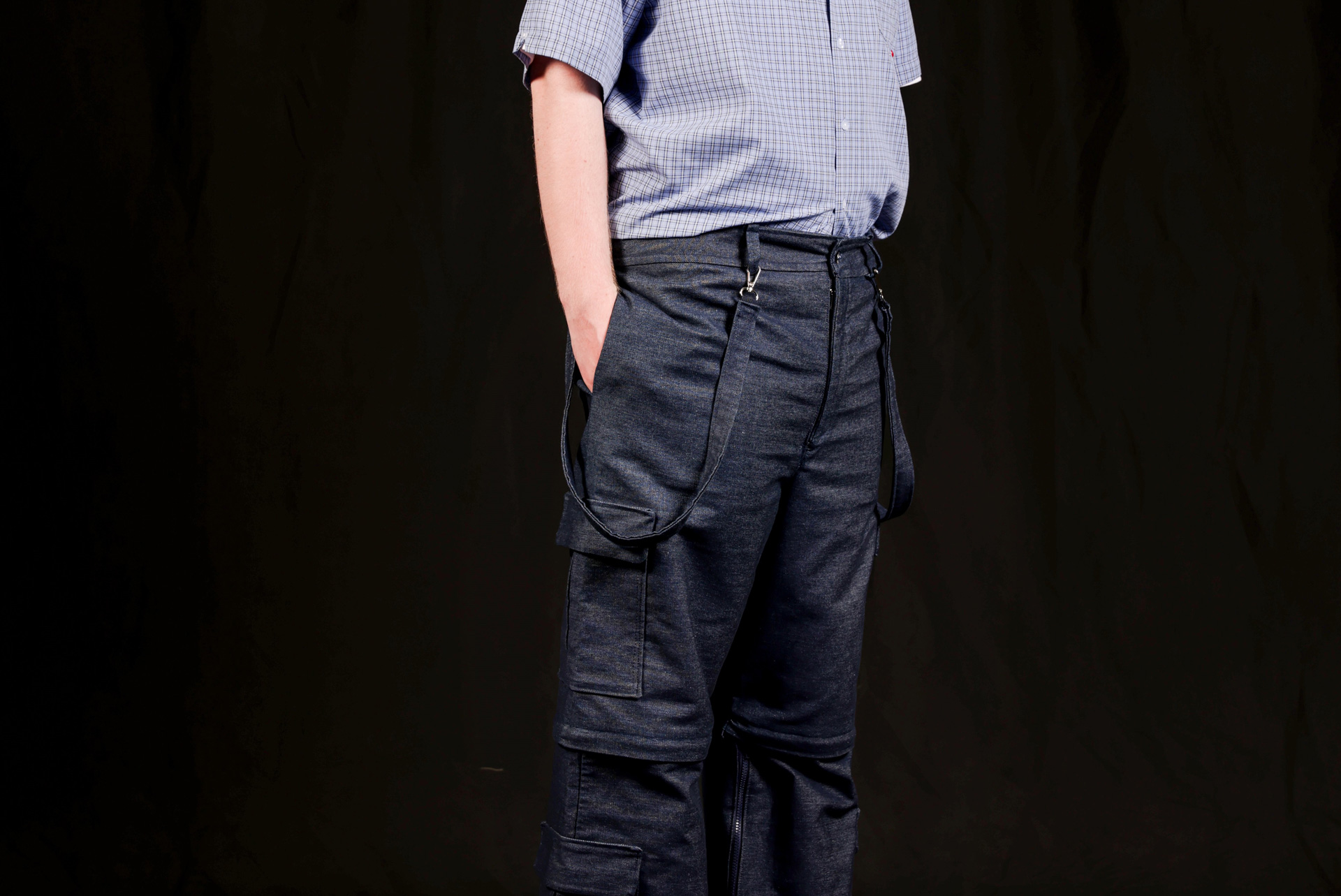 Melbourne’s extreme daily weather fluctuations present challenges when it comes to choosing comfortable, climate-appropriate clothes. To address this issue, I chose to explore transformable clothing. The Smarty Pants were designed to adapt to Melbourne’s ‘four seasons in one day’. These fun and fashionable full-length denim pants entirely transform into shorts and a functional tote bag. My design is made up of panels edged with chunky zippers that can be assembled in various directions, and also features a smart multipurpose strap.