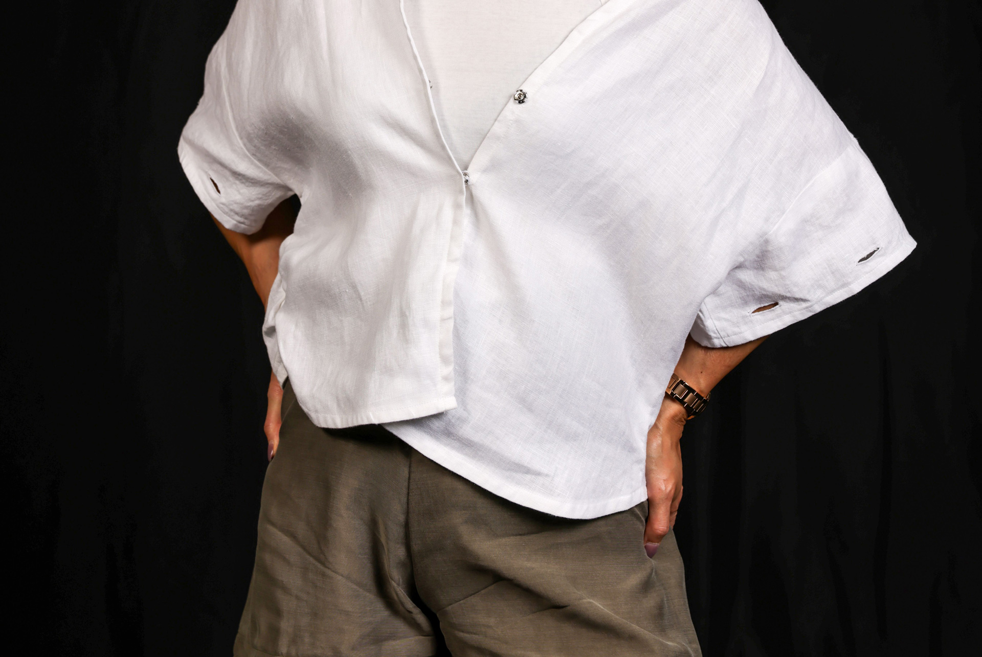 To address the growing issue of textile waste, I designed my garment to focus on recycling an existing Onkaparinga blanket. A statement feature of the coat are the recycled Tasmanian oak buttons, which I made by hand. The coat is designed to be oversized, while the addition of an optional belt makes it versatile for many body types and individuals. The large deep pockets allow for maximum comfort and additional security for valuables.