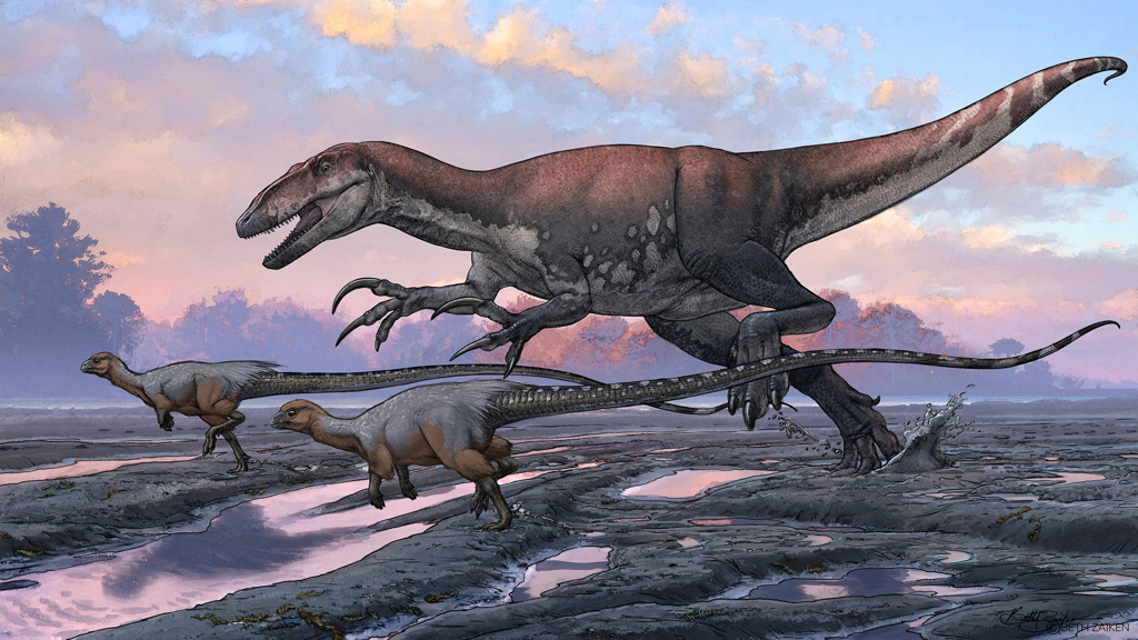 Dinosaur trackways along the Victorian coast show theropods like Australovenator roamed open, sandy floodplains.