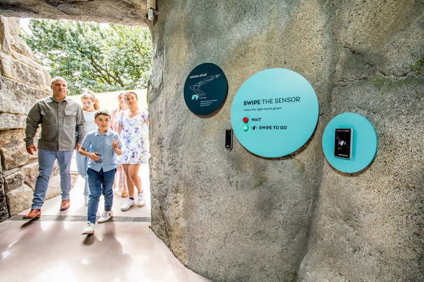 I will walk through a passage with lights up above, and after the last airlock, I will arrive in the Dinosaur Walk exhibition.