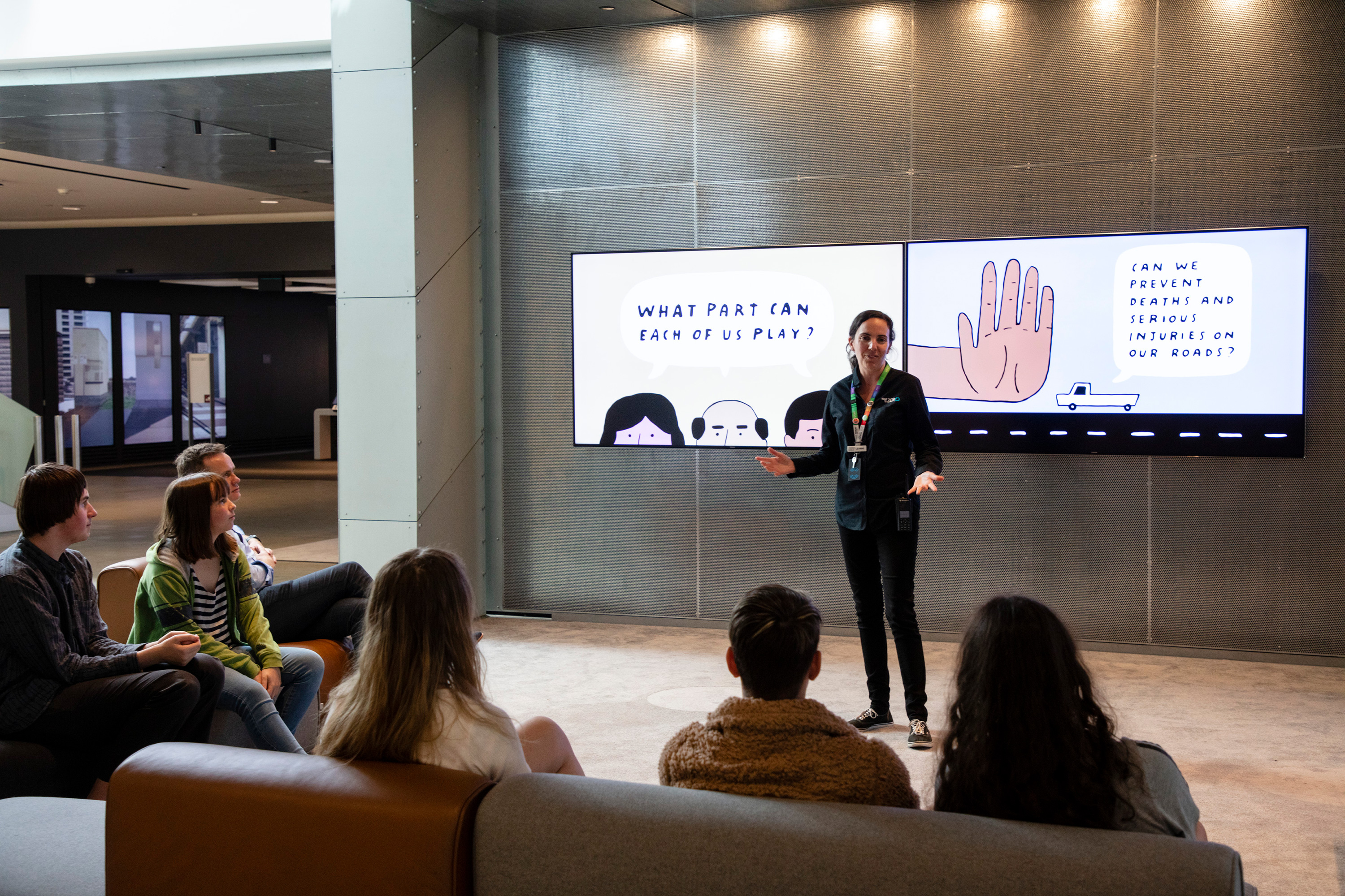 A Road to Zero teacher will be with my group when we are in the exhibition and during the classroom lesson. There are also lots of other staff at the museum that I can get help from. Road to Zero and museum staff are easy to see because they wear black shirts and have coloured lanyards around their neck.