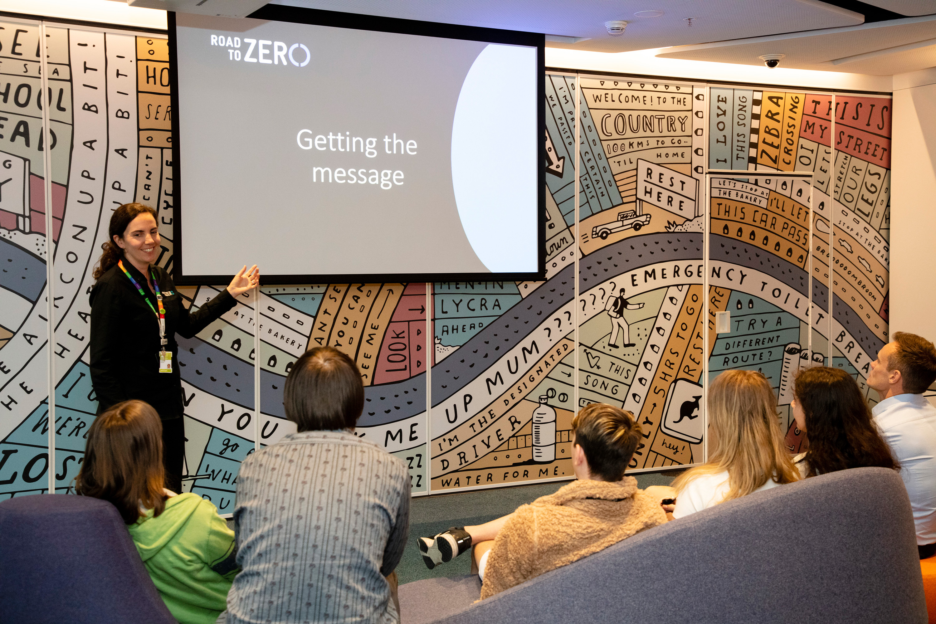 My class will have a lesson and someone from Road to Zero will talk to us. I will get to sit down on comfortable couches and listen to the person talking. I can put my hand up if I want to ask questions or if I have an answer to a question.