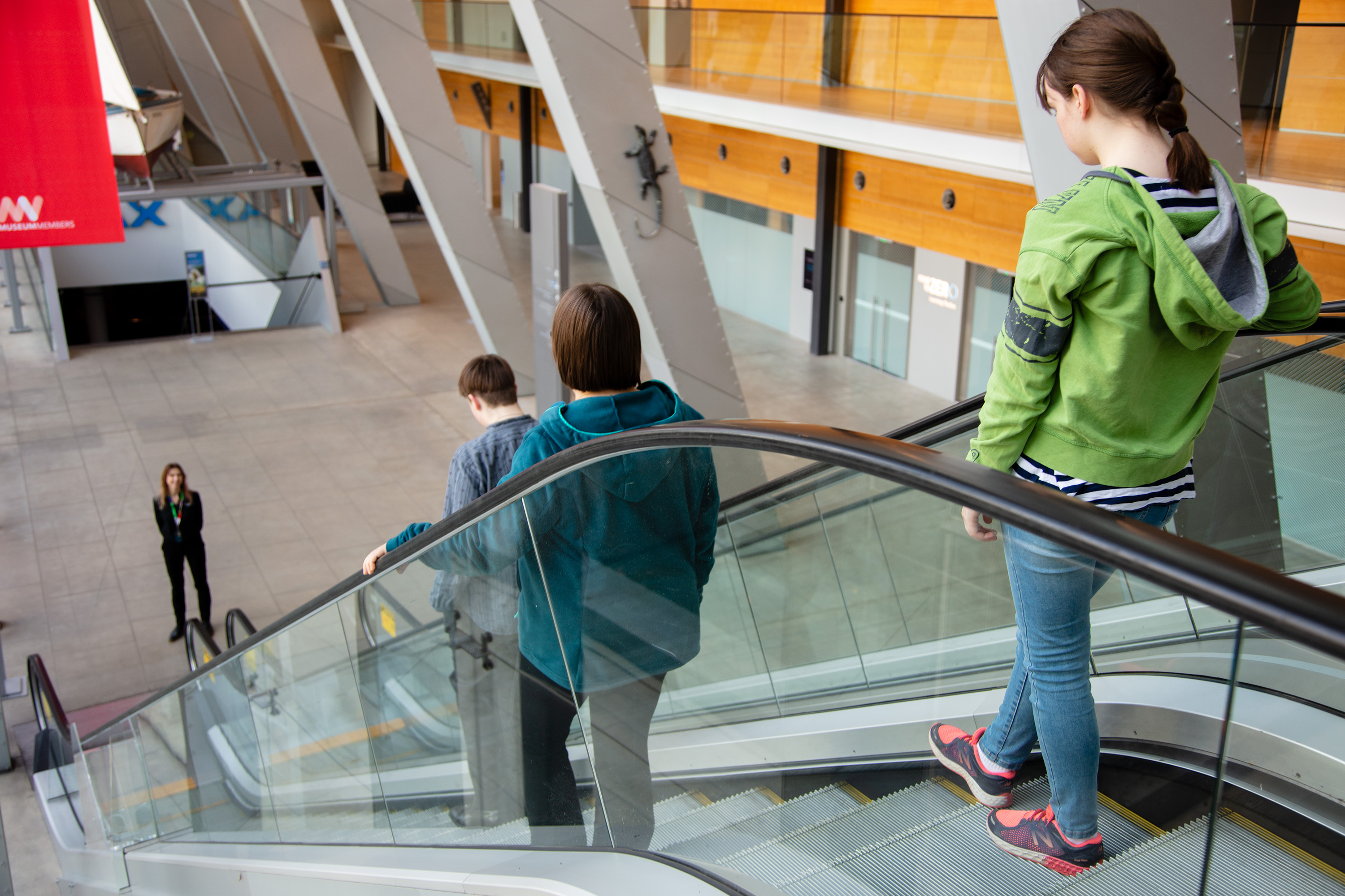 A Road to Zero teacher will meet us at the bottom of the escalators and tell us where to go.