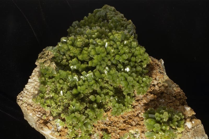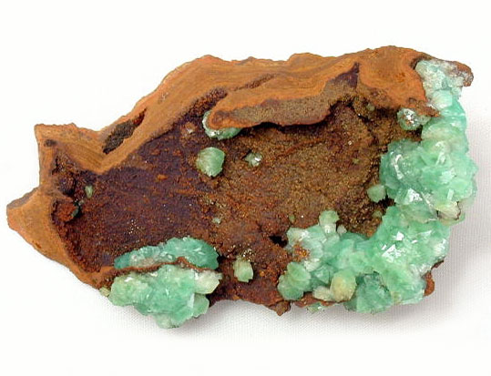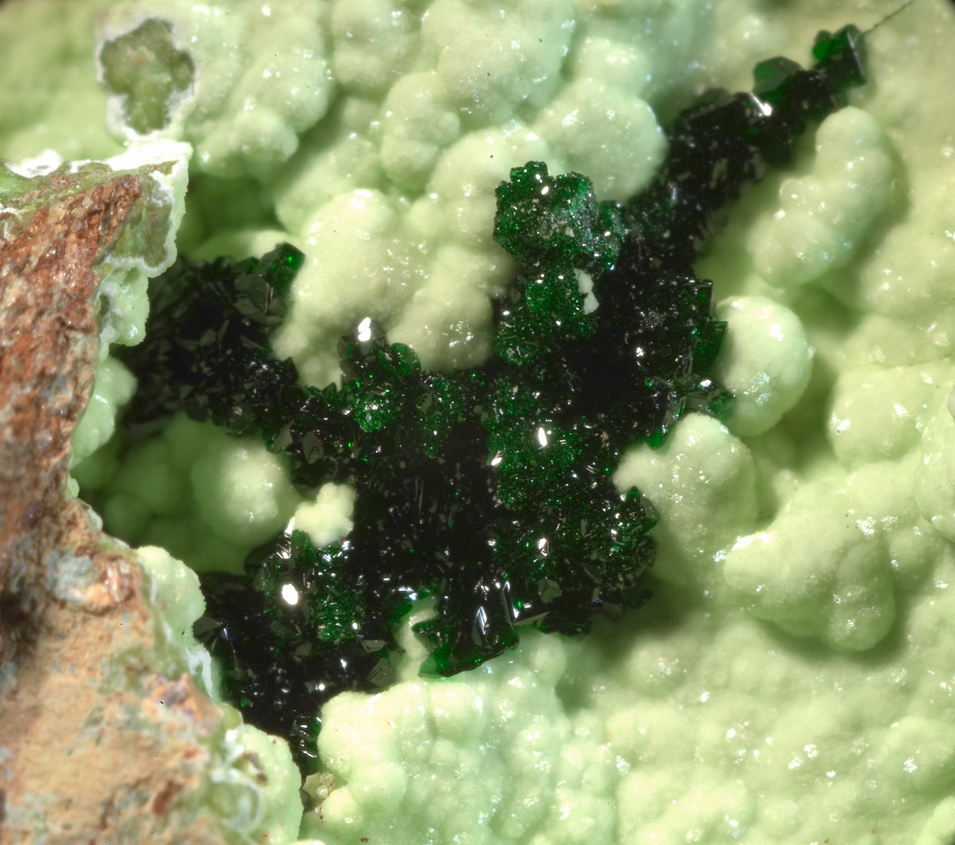 Beautiful combinations of malachite (copper carbonate), cerussite (lead carbonate) and pyromorphite (lead phosphate) have been found at Browns Prospect in the Northern Territory, Australia.